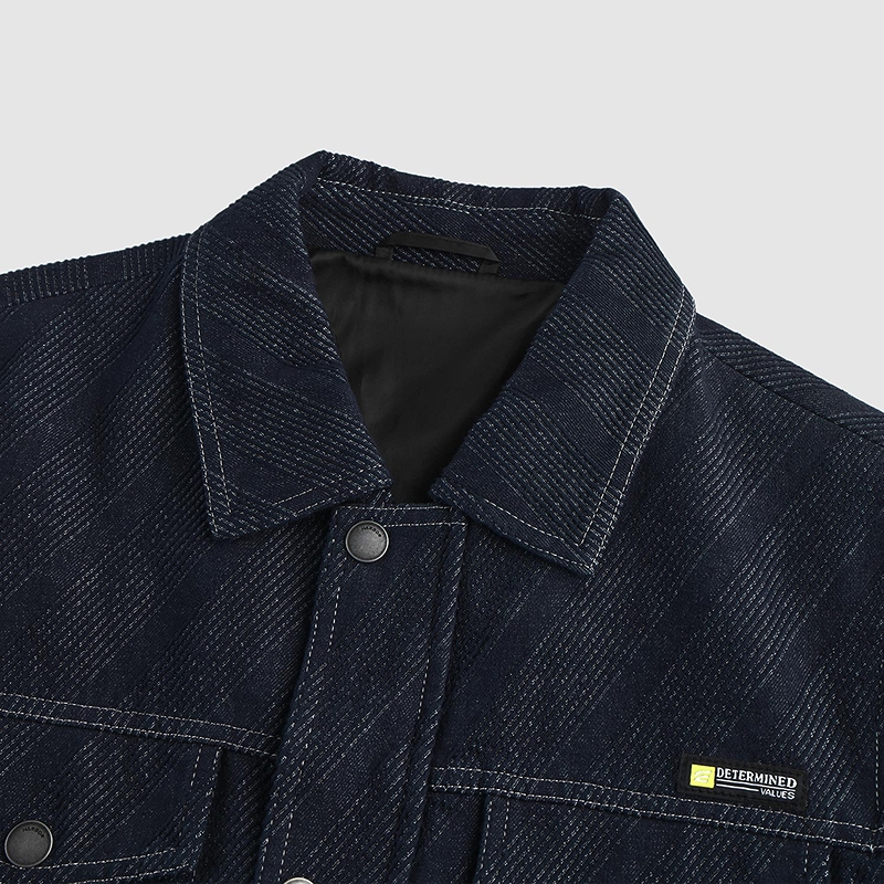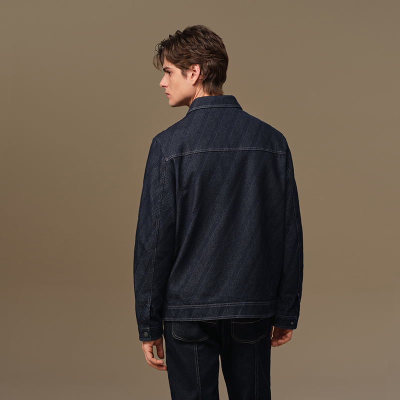 三福2025秋冬新款 夹克都市通勤翻领外套男507826 巴恩风牛仔领工装