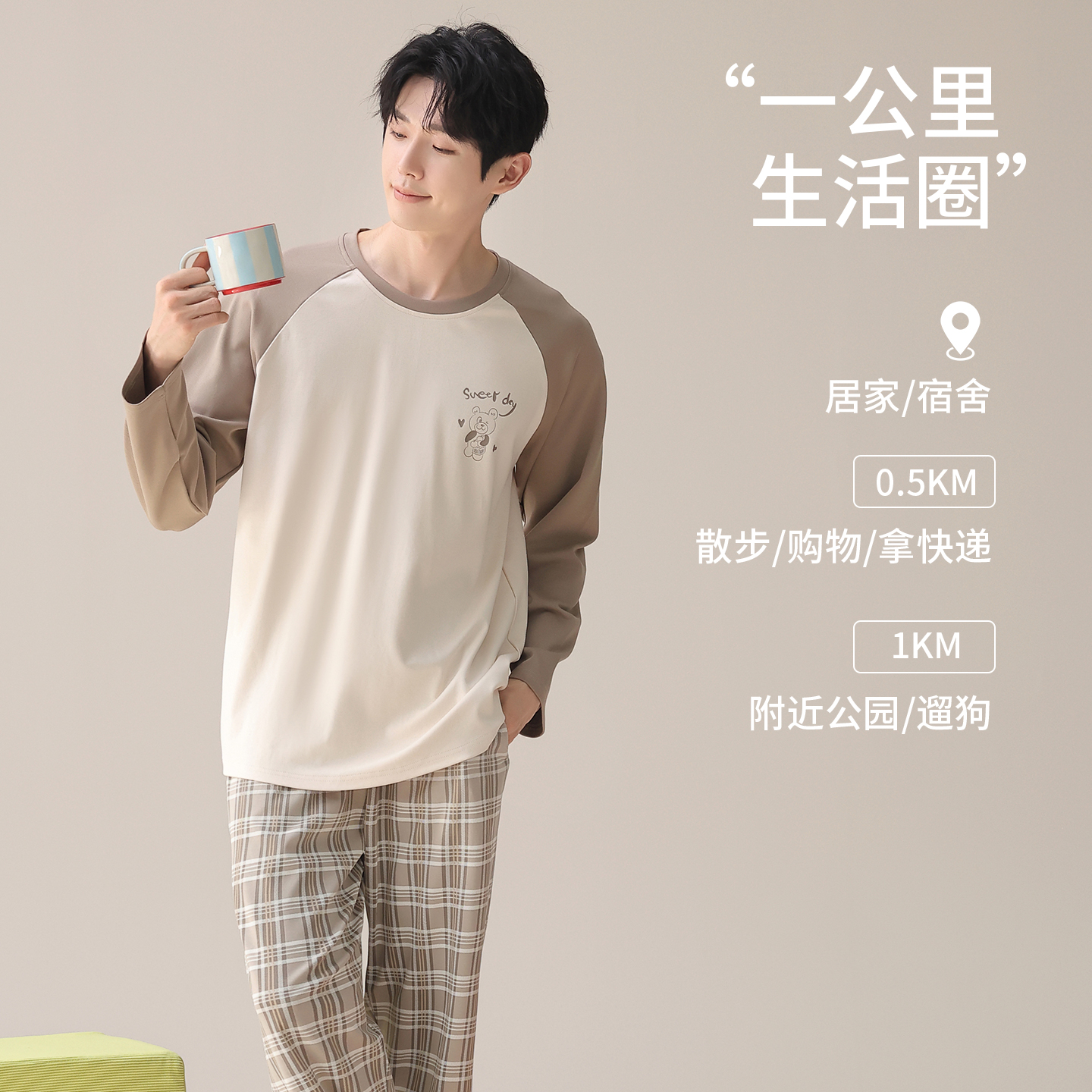 纯棉2025新款 男士 春秋全棉长袖 套装 家居服 长裤 都市丽人睡衣男款