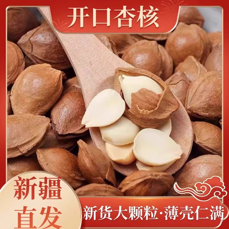 今年新货新疆开口杏仁500g手剥带壳熟小银杏坚果奶香味杏核零食