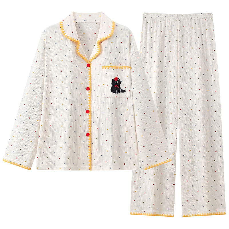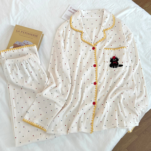 棉绸长袖 开衫 大码 长裤 学生宽松家居服套装 2025超火睡衣女春秋季