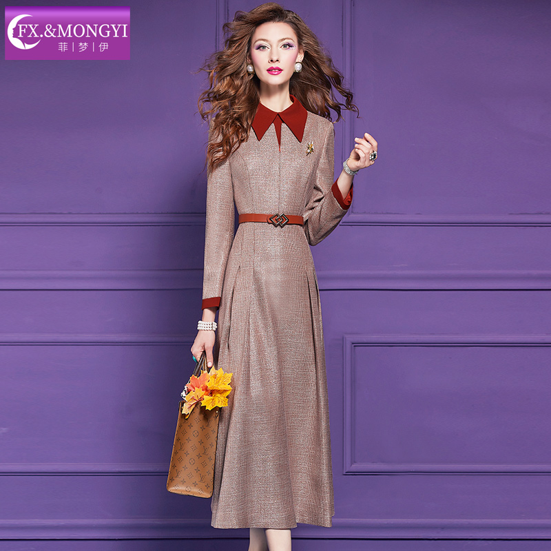 时尚 秋季 高级感小香风名媛收腰中长裙 连衣裙女长袖 菲梦伊原创衬衫