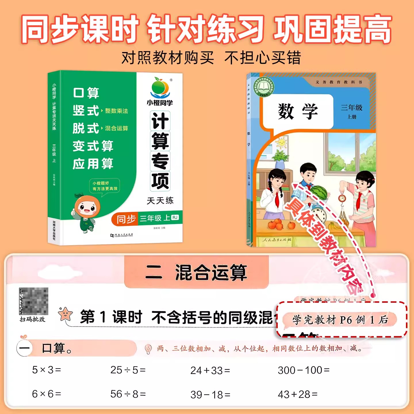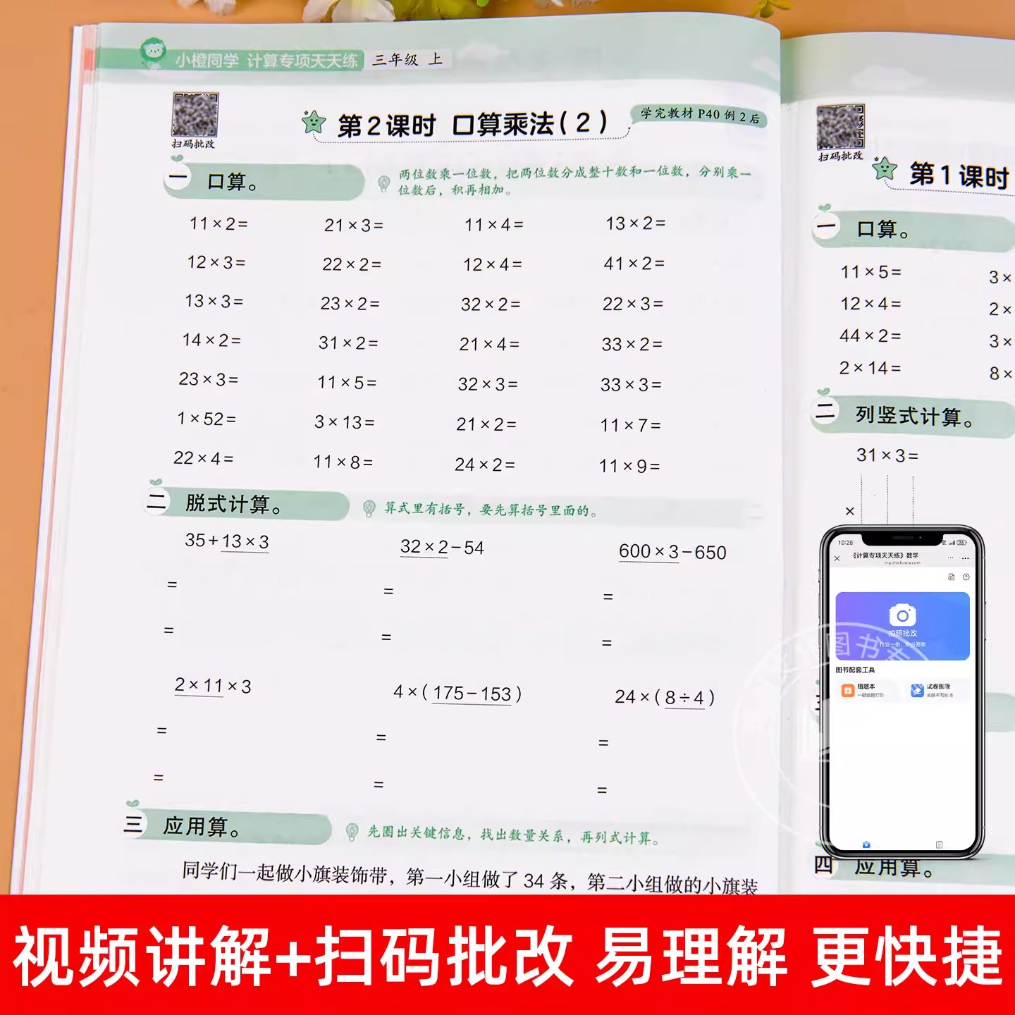 变式 应用题三合一口算题脱式 计算练习口算题卡同步练习册练习题 计算题专项训练每日一练口算竖式 三年级上册数学口算天天练人教版