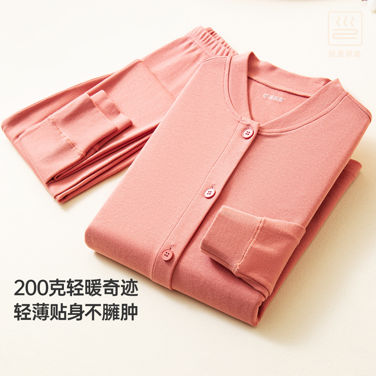 中老年棉毛衫 上衣纯棉秋冬保暖内衣套装 女开衫 顶瓜瓜老人秋衣秋裤