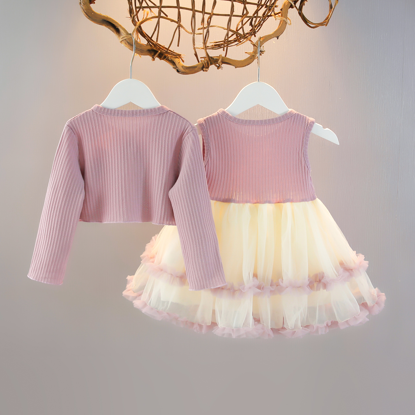 拉夏贝尔法式 漂亮独特设计感超仙长裙粉色网纱拼接t恤连衣裙女秋