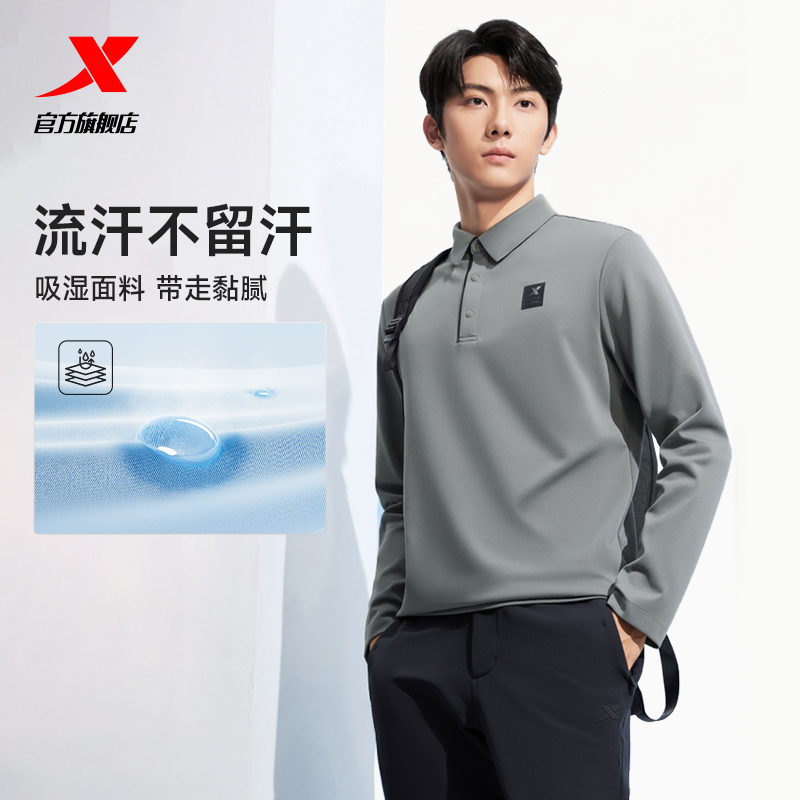 商务通勤速干半拉链立领T恤男装 上衣男秋新款 针织长袖 安踏零压T