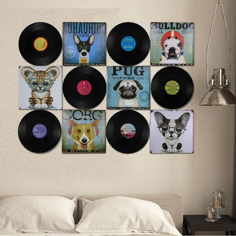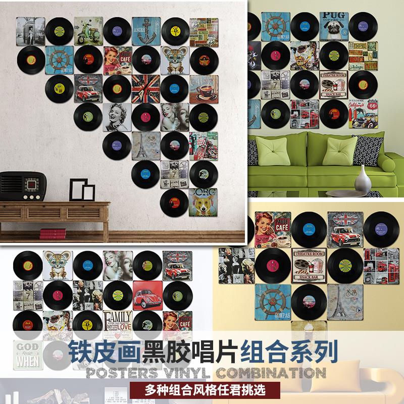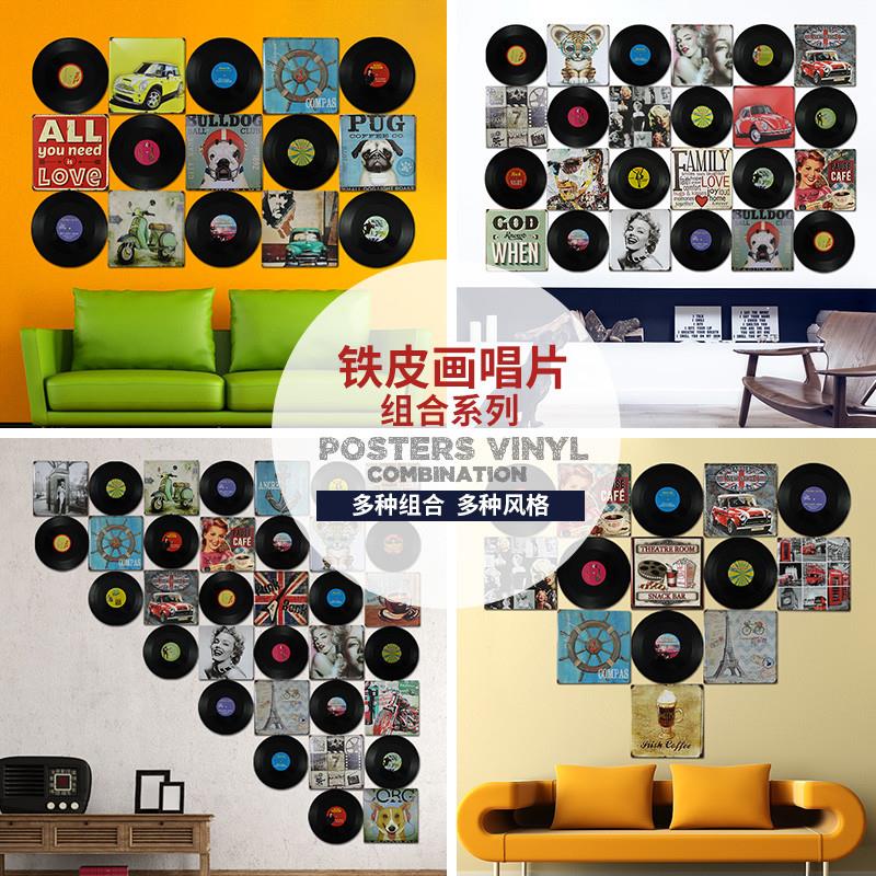 饰品上 店墙饰餐厅墙壁客厅装 新品 复古铁皮画黑胶唱片组合挂件服装