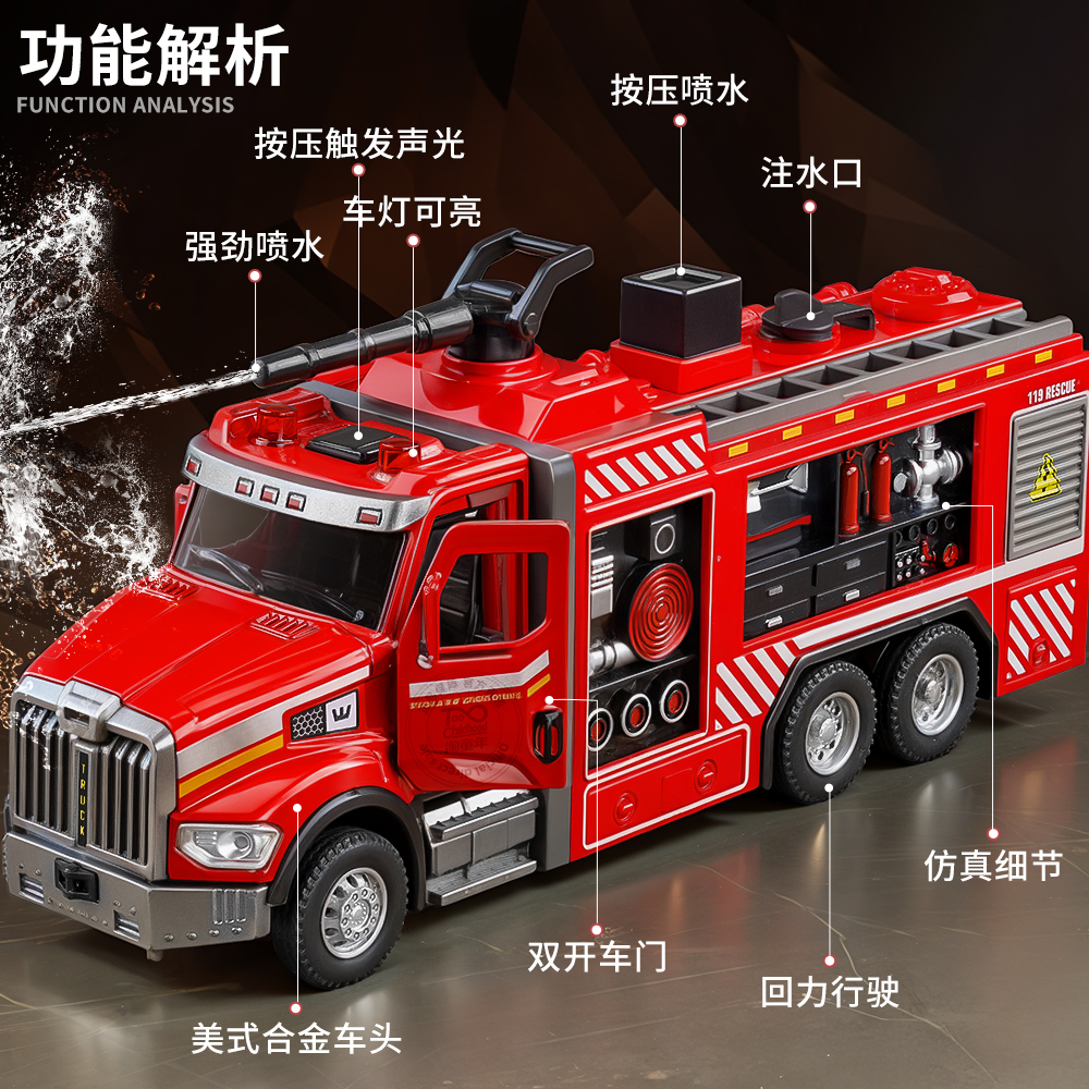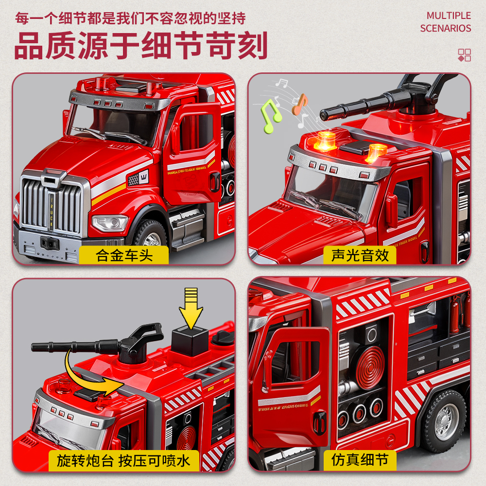 合金消防车玩具车儿童小汽车2025新款 消防员玩具模型男孩生日礼物