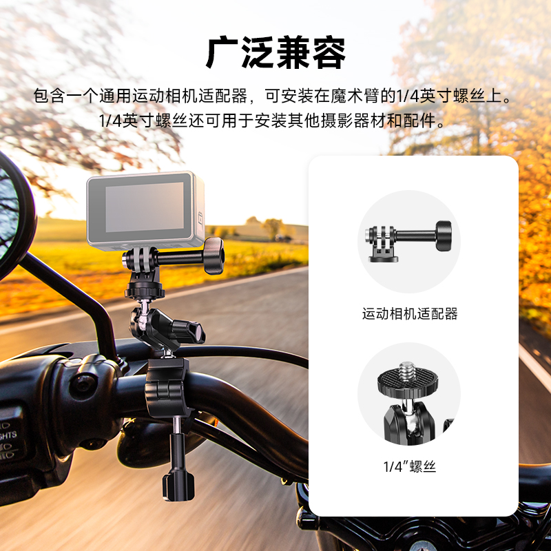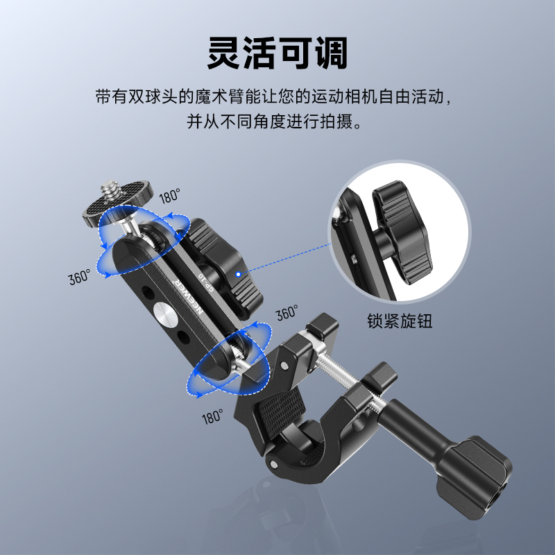 Insta360自行车山地车把固定摄影配件 NEEWER纽尔铝合金摩托车运动相机骑行支架适用GoPro13 大疆Action5