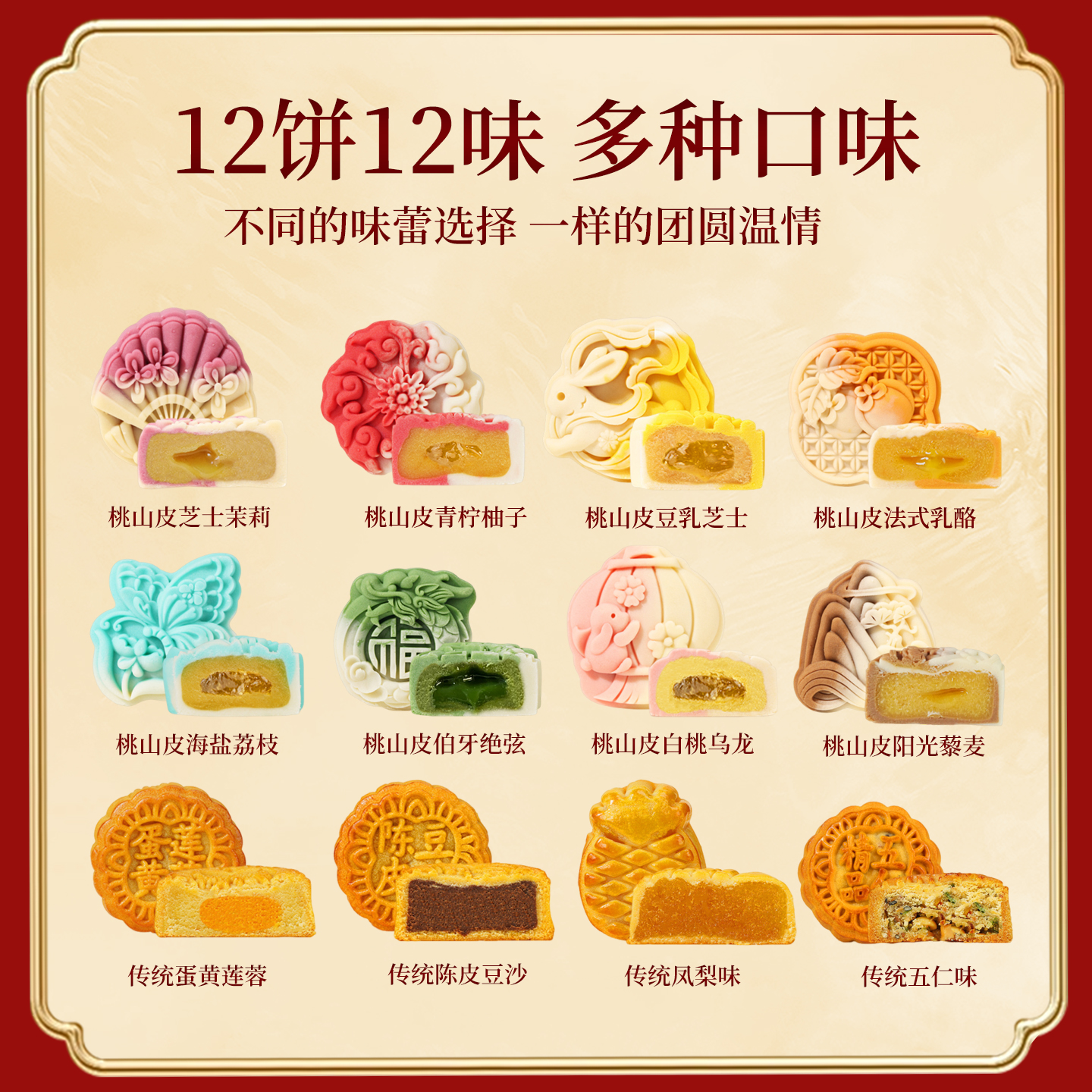 味滋源月饼礼盒老式 五仁莲蓉蛋黄冰皮流心月饼团圆中秋节送礼 广式