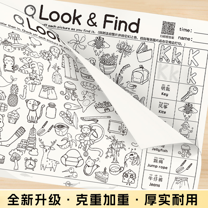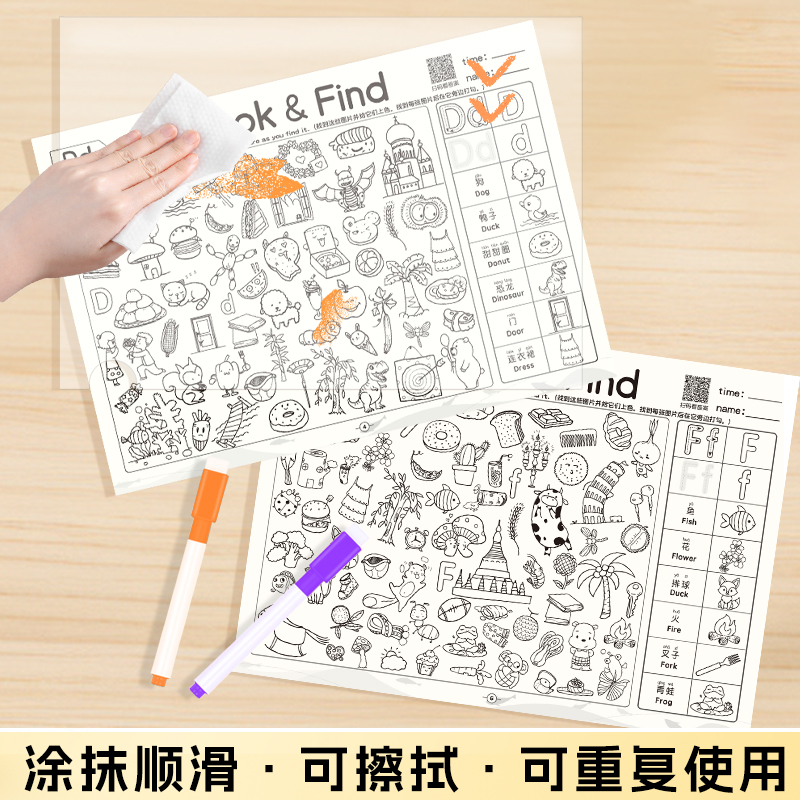 look find幼儿园早教找物品观察力练习专注力提升英语涂色训练卡