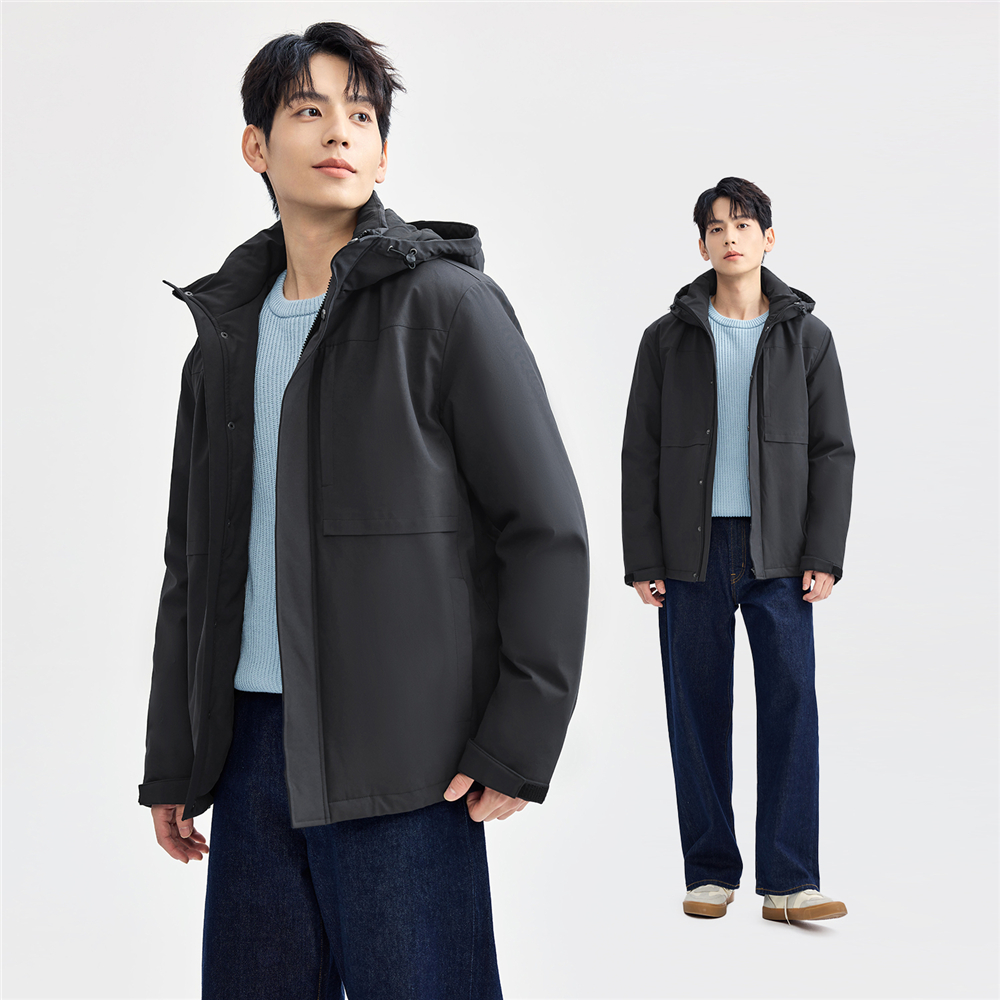 佐丹奴棉衣外套男秋冬新款 破骨多口袋拉链连帽棉服夹克男01075677