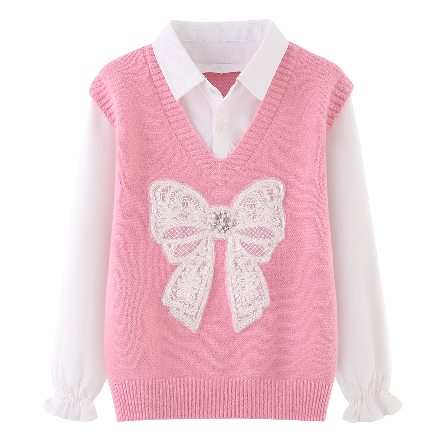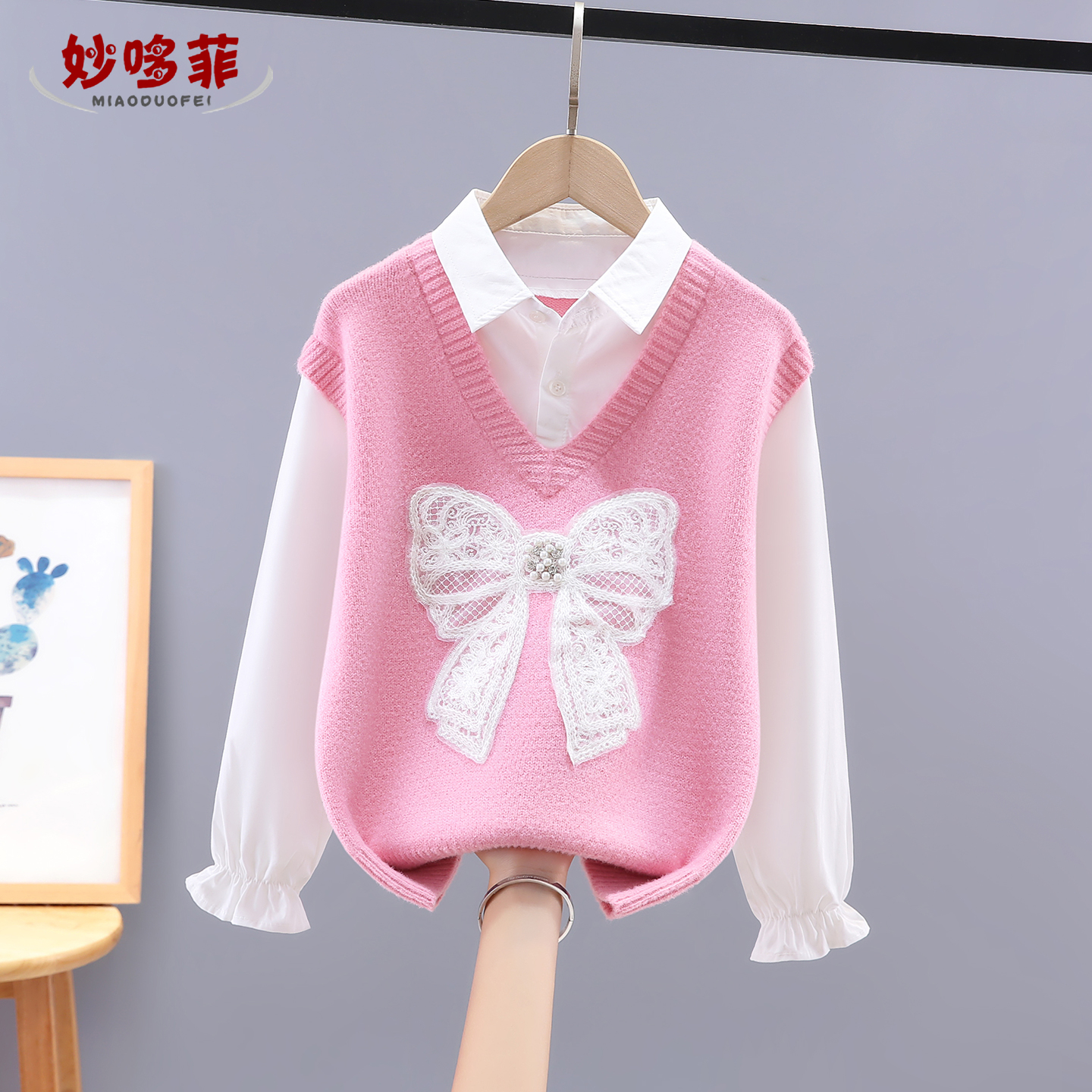 大童女孩洋气时髦早秋上衣假两件 儿童针织衫 女童毛衣2025新款 秋季