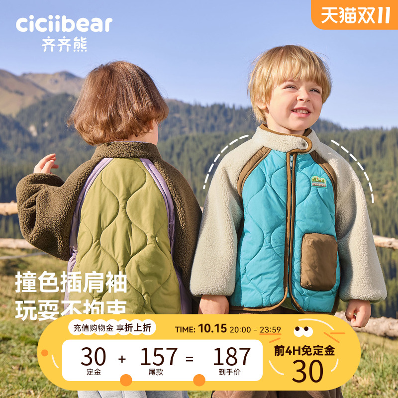 男童夹棉外套儿童棉衣加厚 齐齐熊宝宝棉服秋冬装 前4H免定金