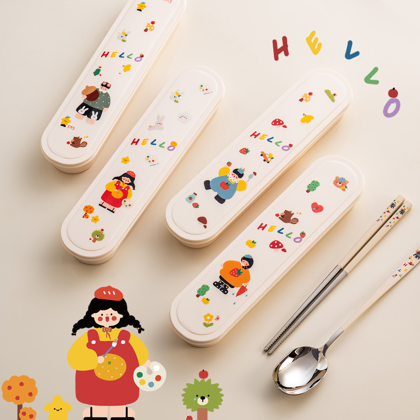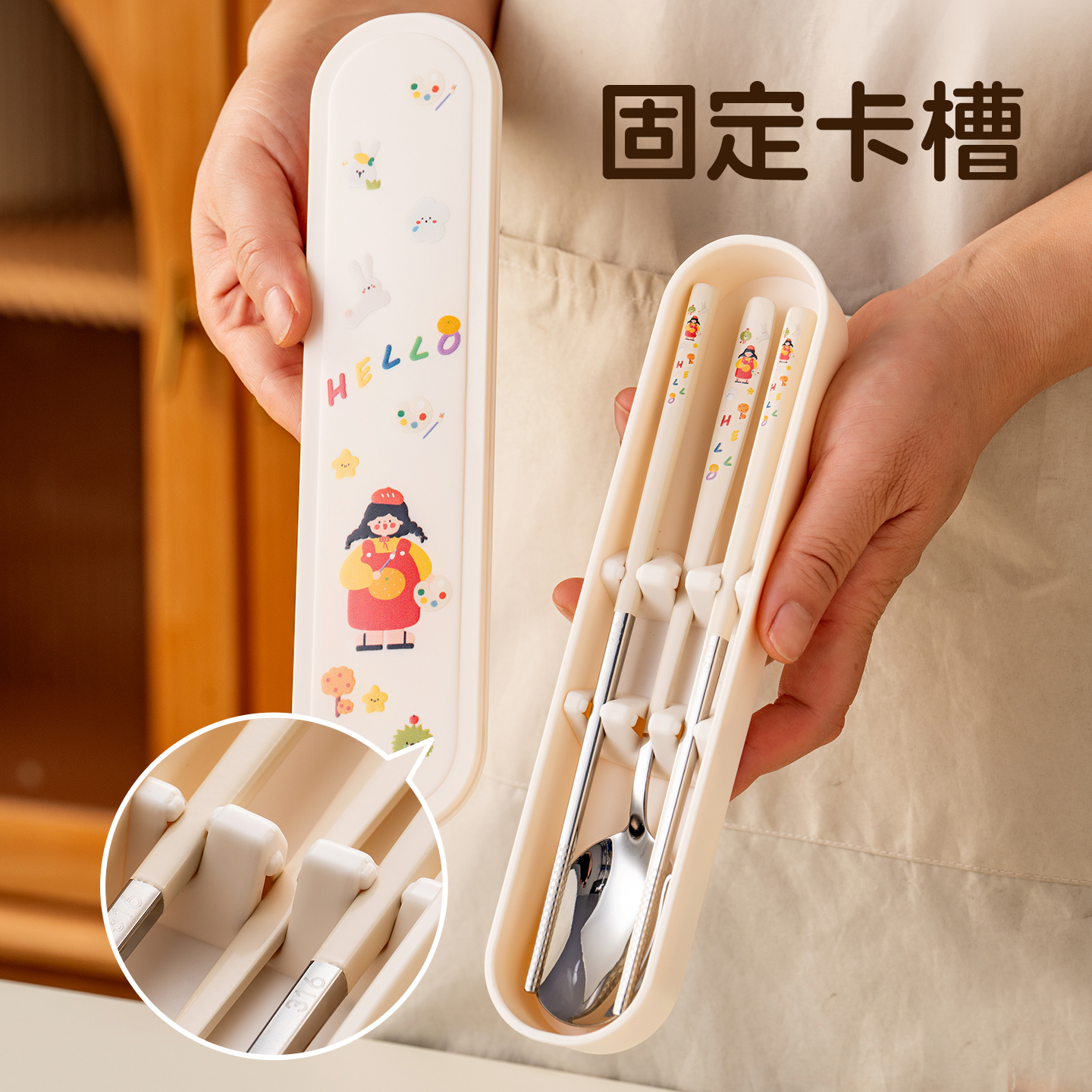 onlycook学生静音便携餐具316不锈钢筷子勺子套装 儿童专用收纳盒