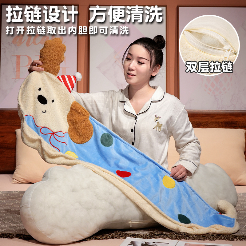 卡通可爱小狗长条抱枕毛绒波点小狗侧睡夹腿床上男女生日礼
