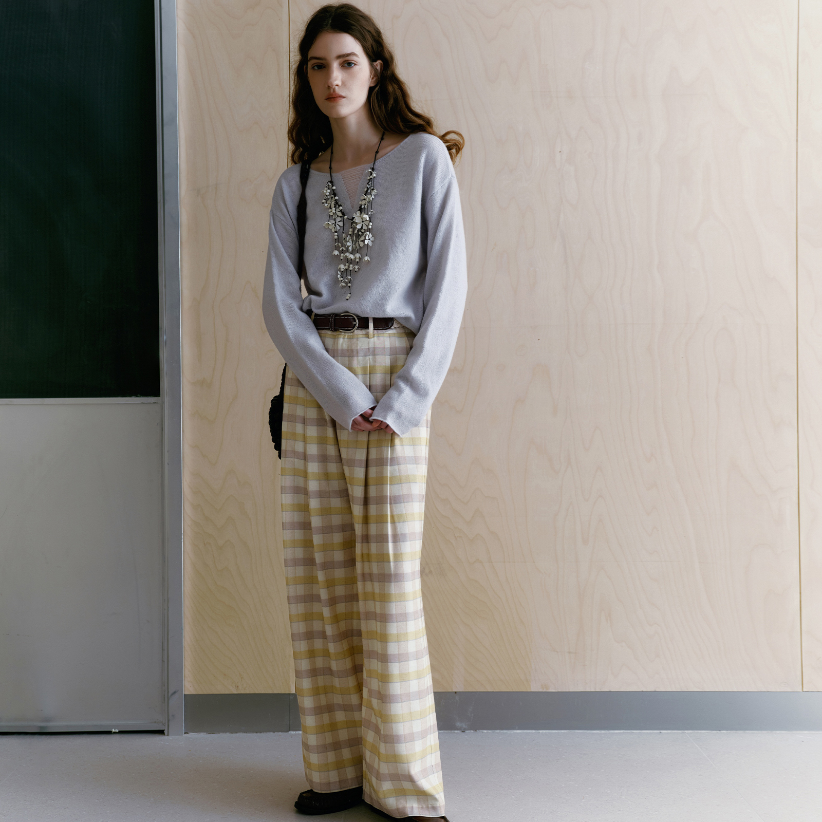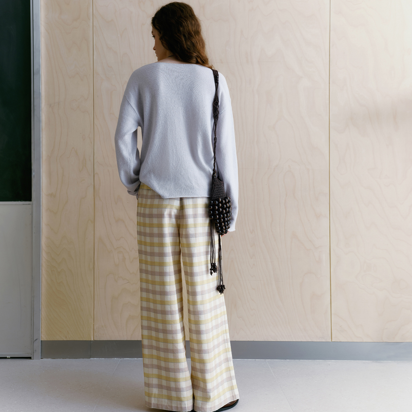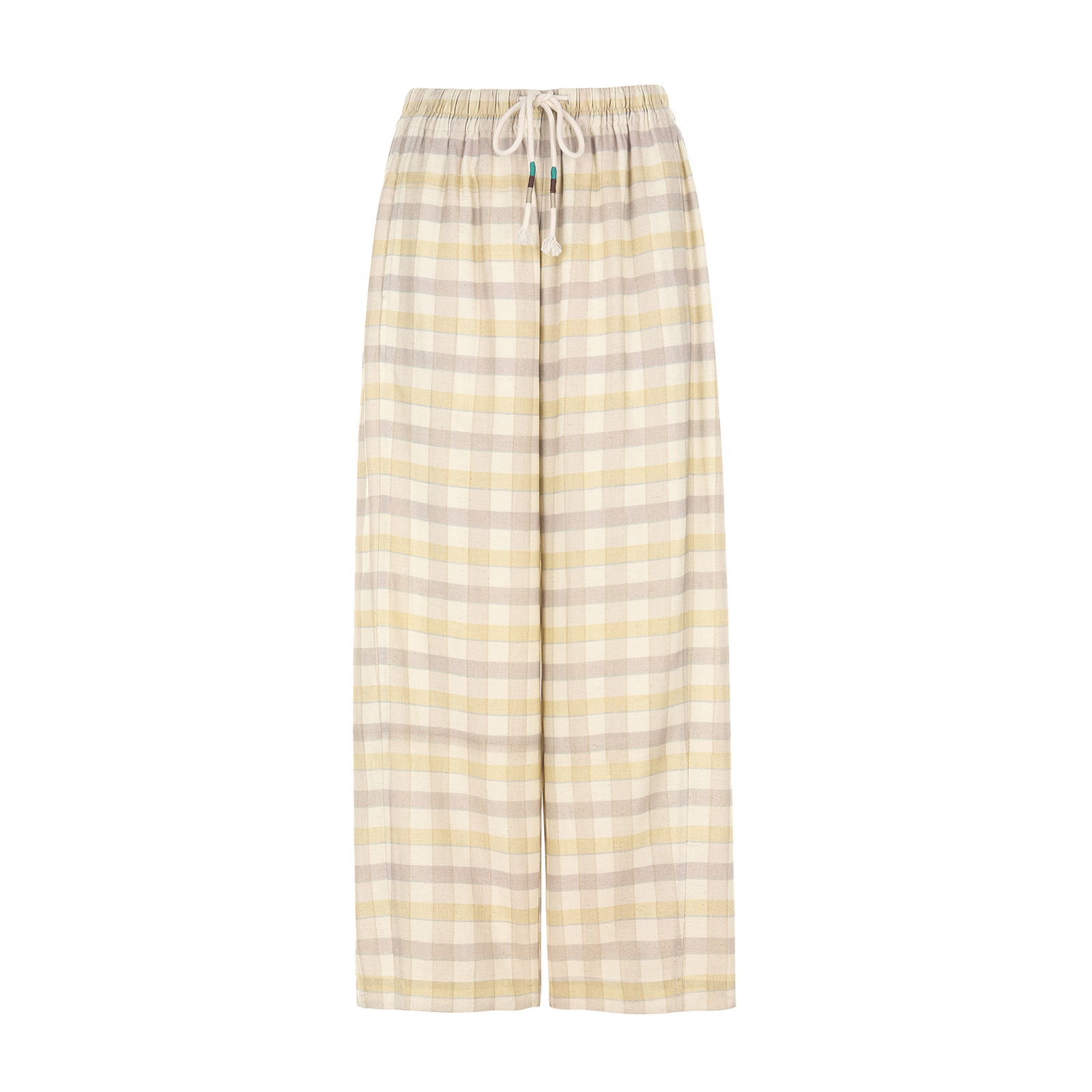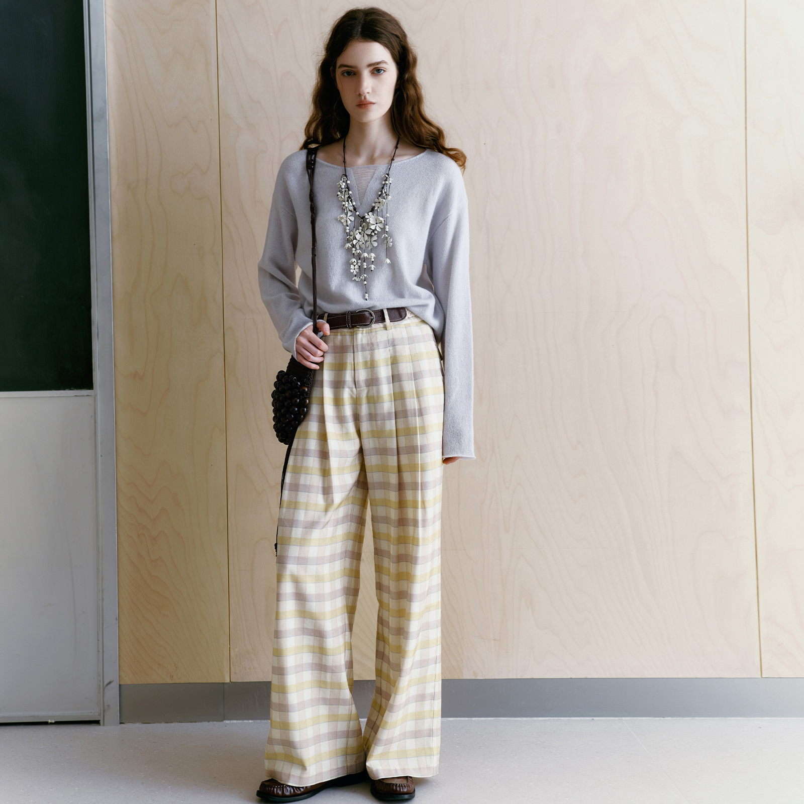 黄色简约长裤 2025早秋新品 女 try格纹松紧腰脚口设计感休闲裤 wana