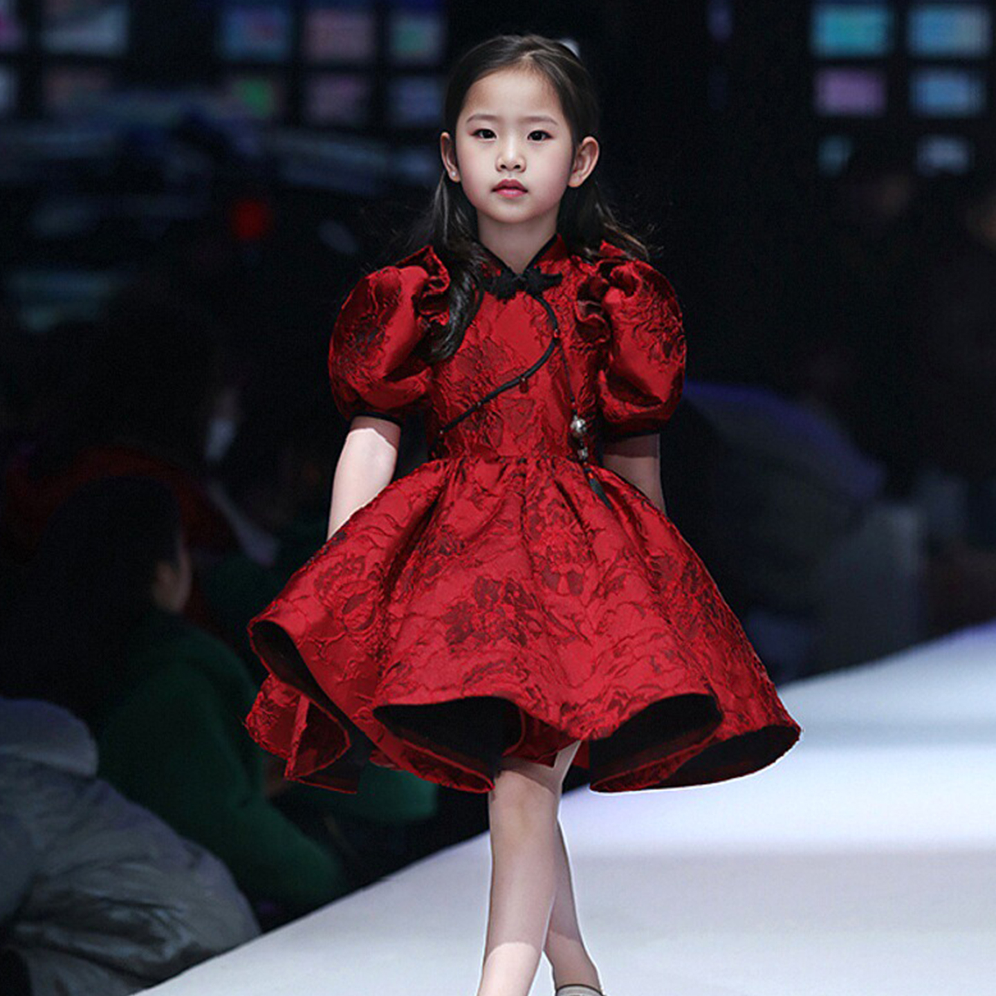 演出服 新中式 女童礼服2025新款 高端周岁女宝宝公主裙红色儿童唐装