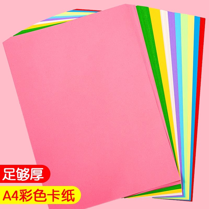卡纸彩色手工硬卡纸a3A4儿童幼儿园小学生剪纸彩纸4k黑白加厚制作材料包8K学生绘画手工纸粉色红色12色