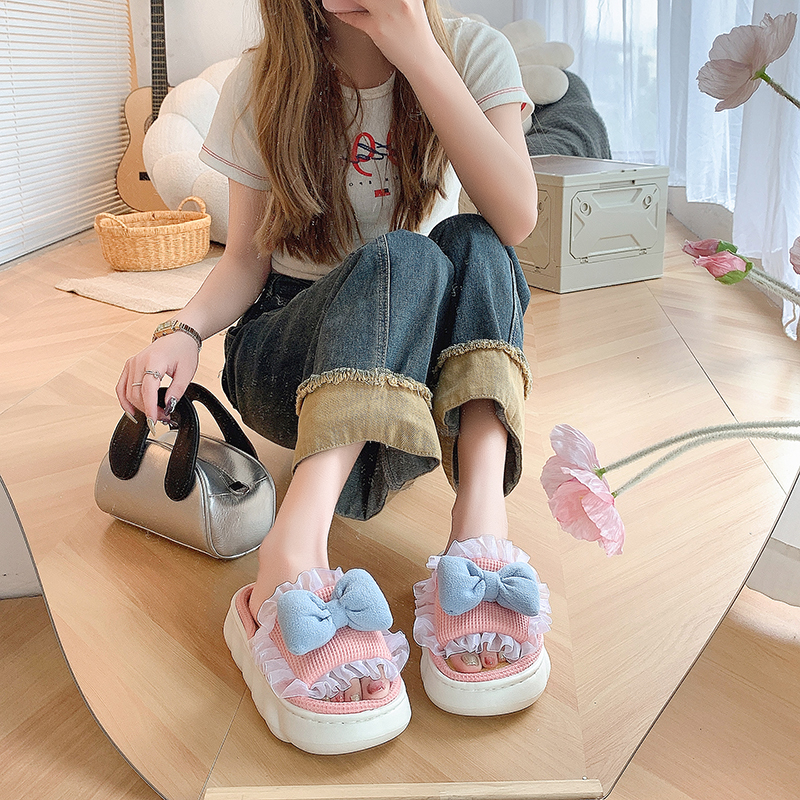 拖鞋 卡通亚麻办公室吸汗透气布底 女春秋棉麻居家室内可爱地板四季