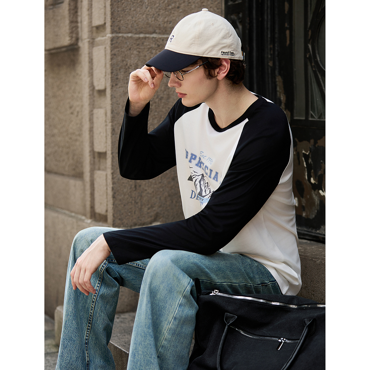 黑色印花美式 唐狮2025新款 插肩袖 T恤男士 街头外穿休闲慵懒感 长袖