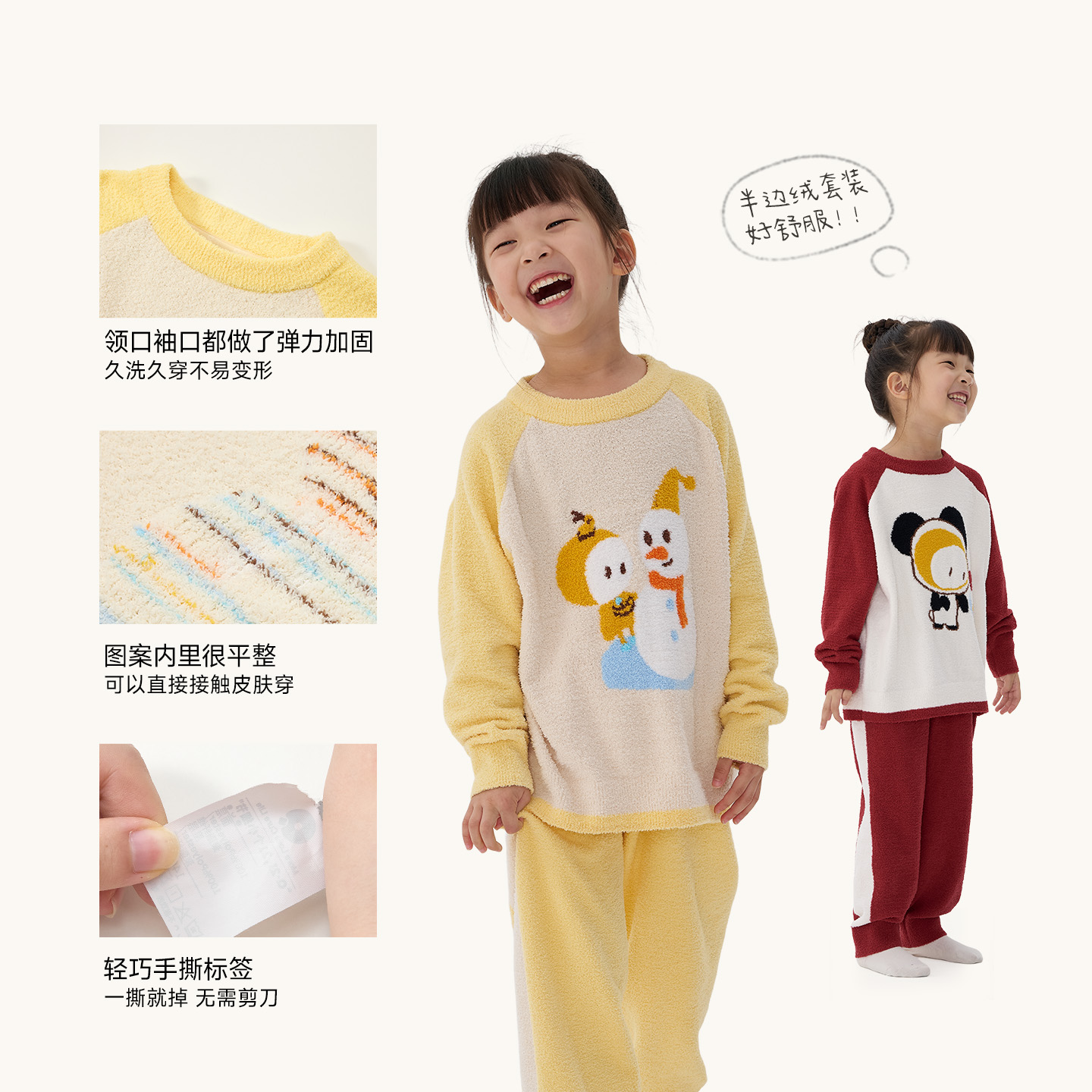 Q21x阿嘟白泽半边绒家居服儿童睡衣男女童保暖睡衣亲子家居服外穿