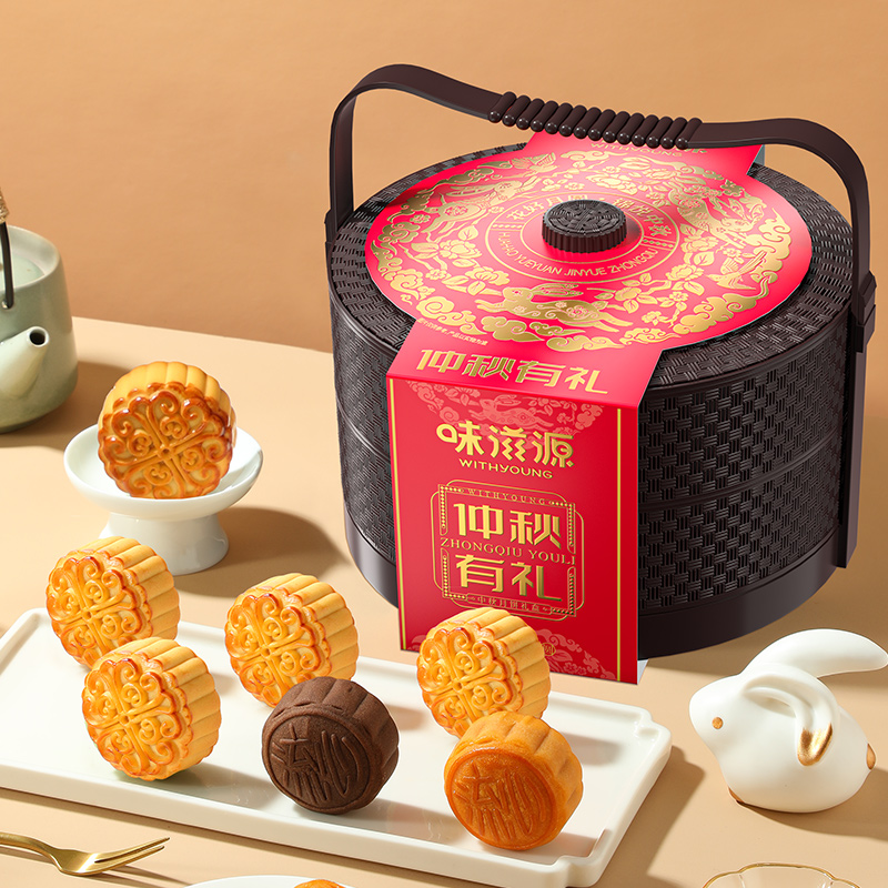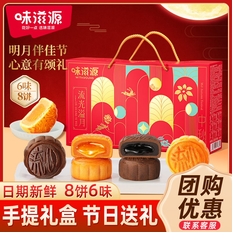 味滋源月饼礼盒老式 蛋黄莲蓉冰皮巧克力流心中秋送礼团购 五仁广式