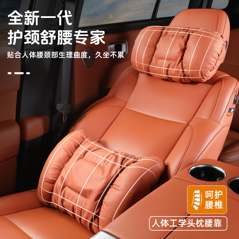 新款 泡泡棉汽车头枕车载护颈枕抗污皮靠枕颈枕座椅车用靠垫腰靠