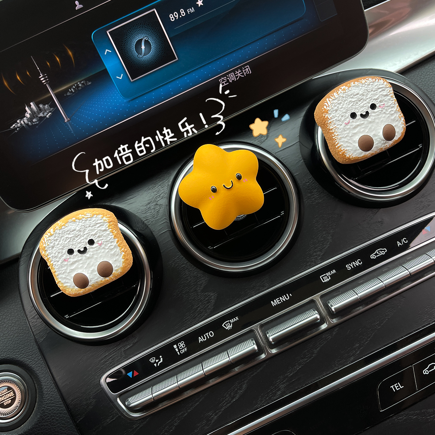 创意车载香薰可爱小吐司幸运星星空调出风口装 饰香氛扩香石车内饰