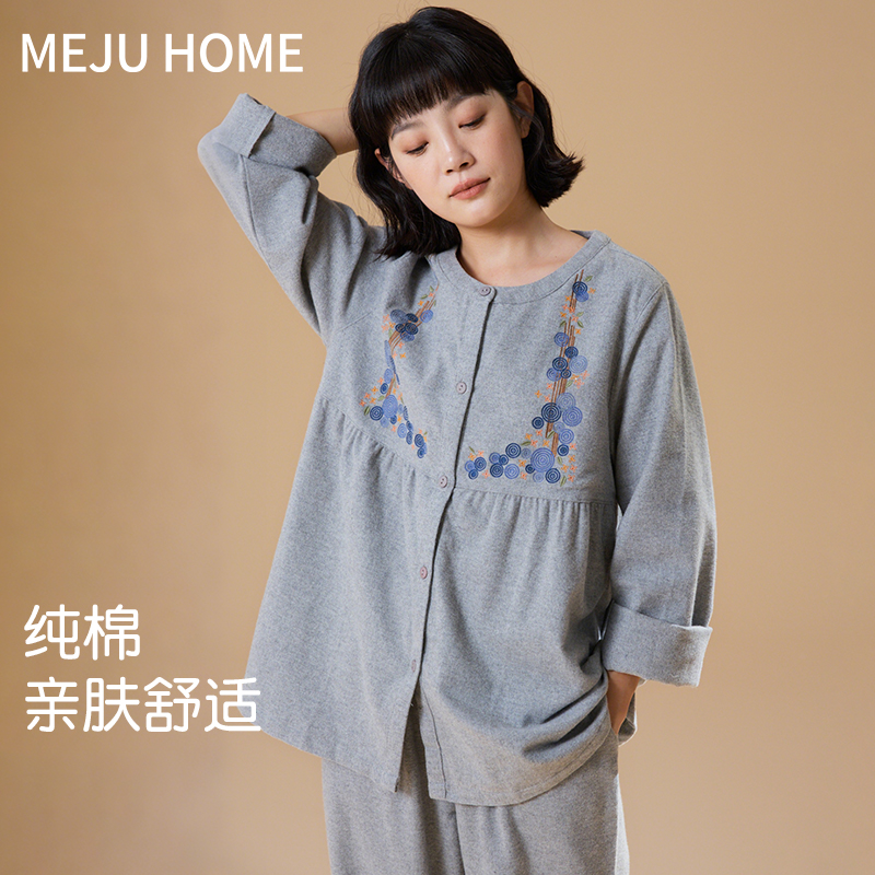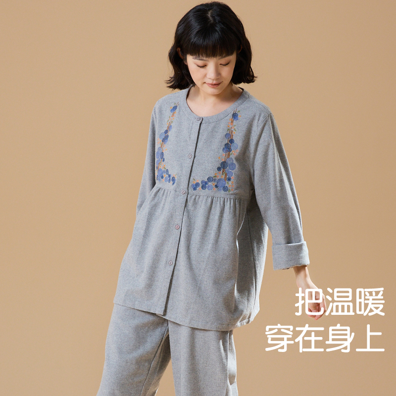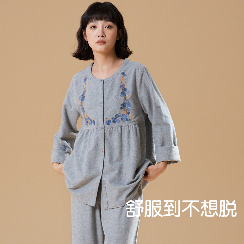 宽松花卉刺绣家居服套装 2025春秋新款 女士纯棉睡衣A类磨毛韩版