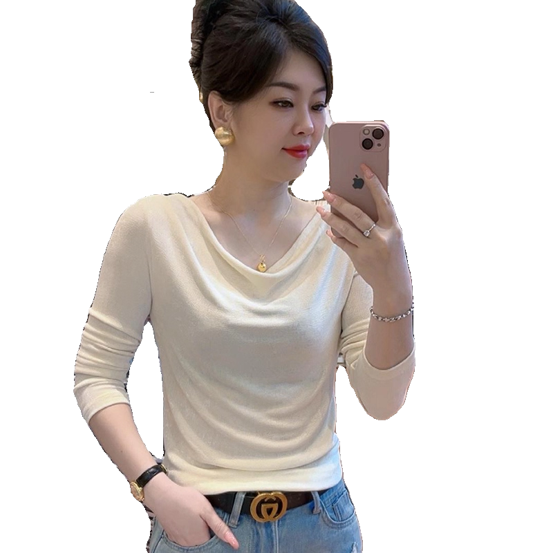 显瘦减龄洋气打底衫 秋冬季 T恤女设计感修身 荡领长袖 上衣 2025新款