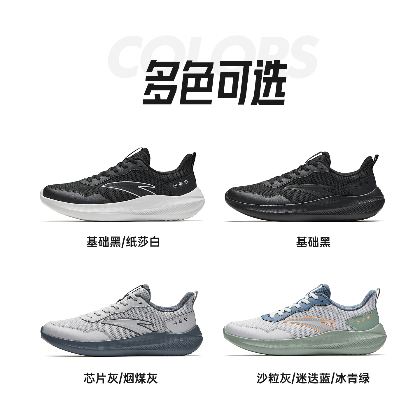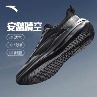 休闲轻便减震通勤跑步鞋 安踏晴空男鞋 新款 2025秋季 子 纯黑色运动鞋