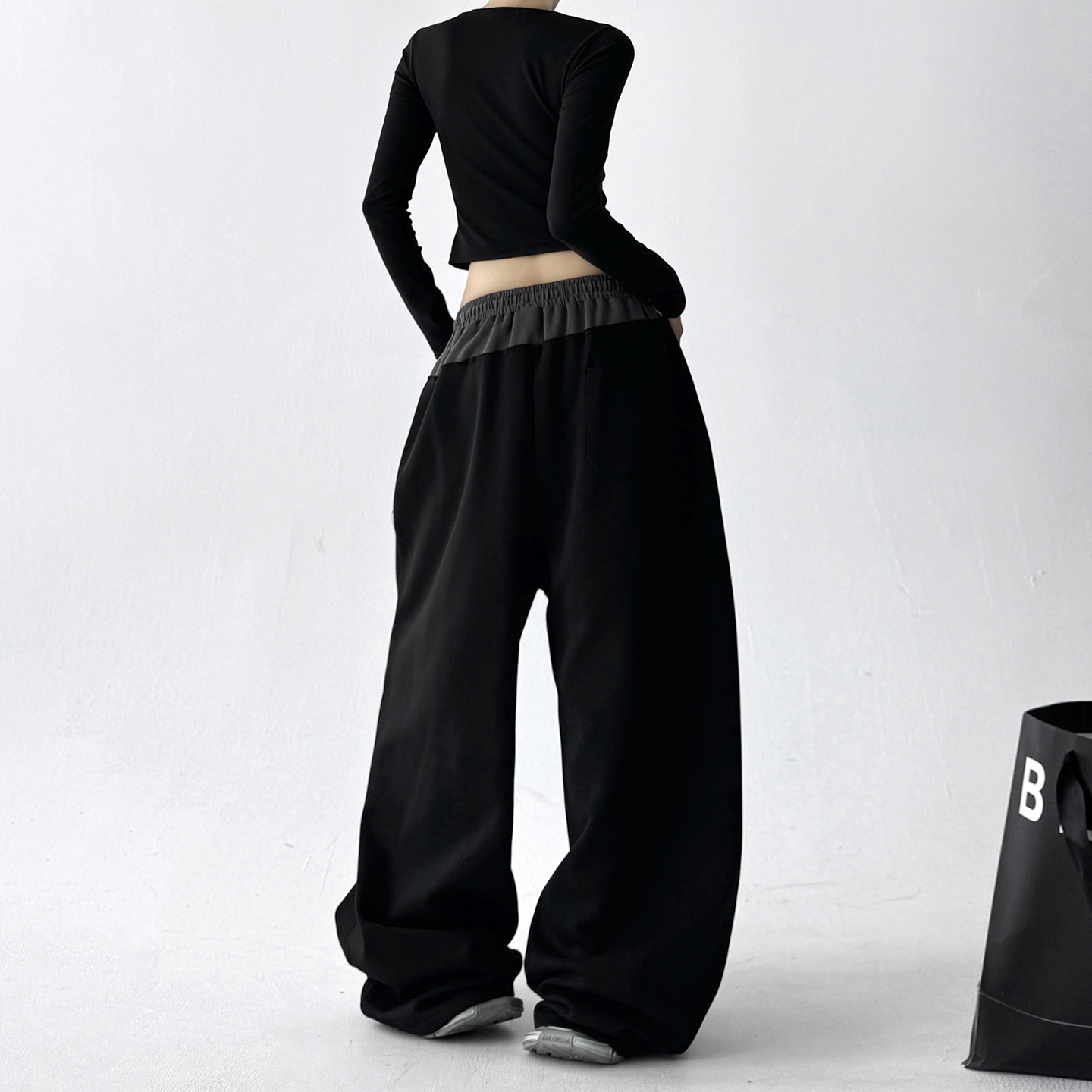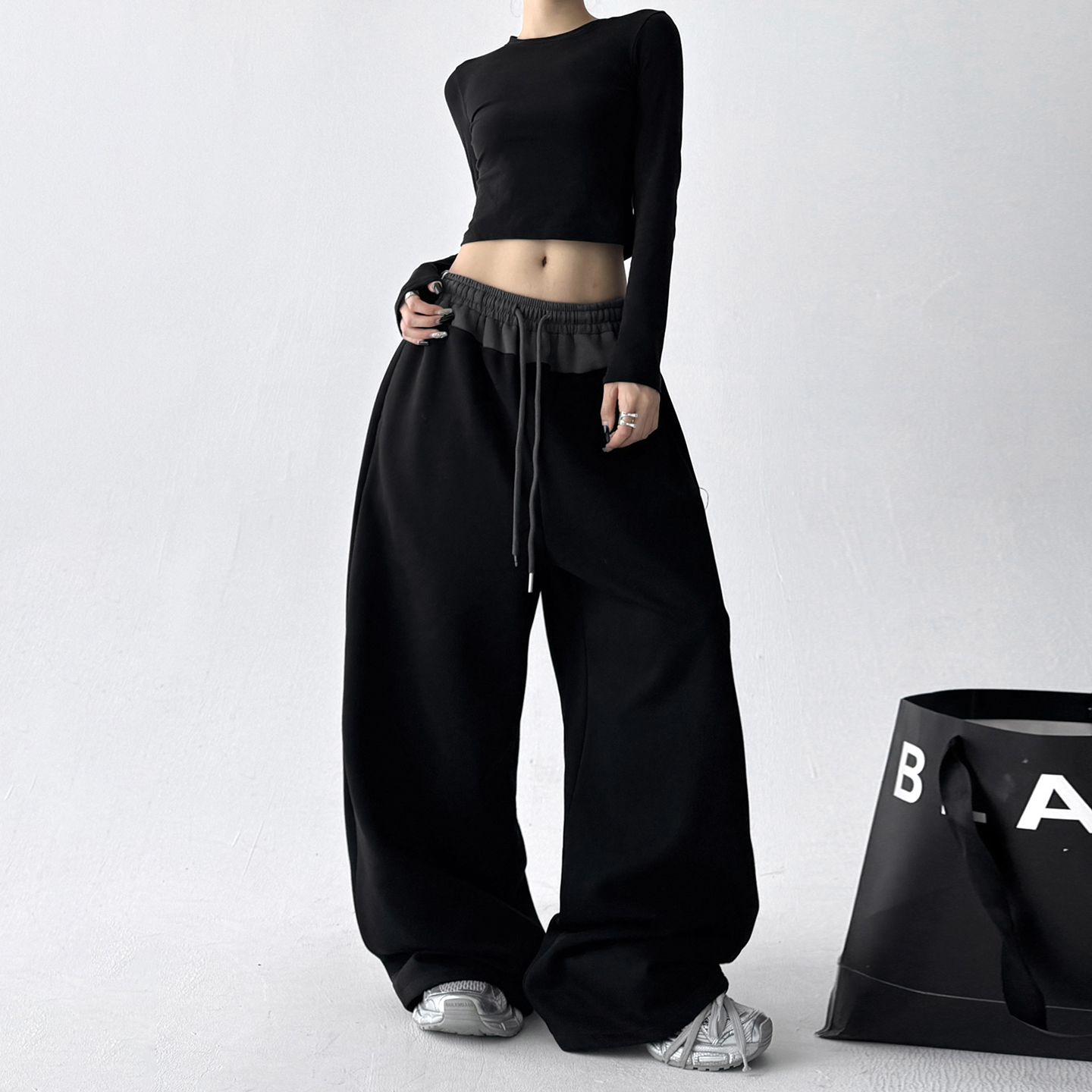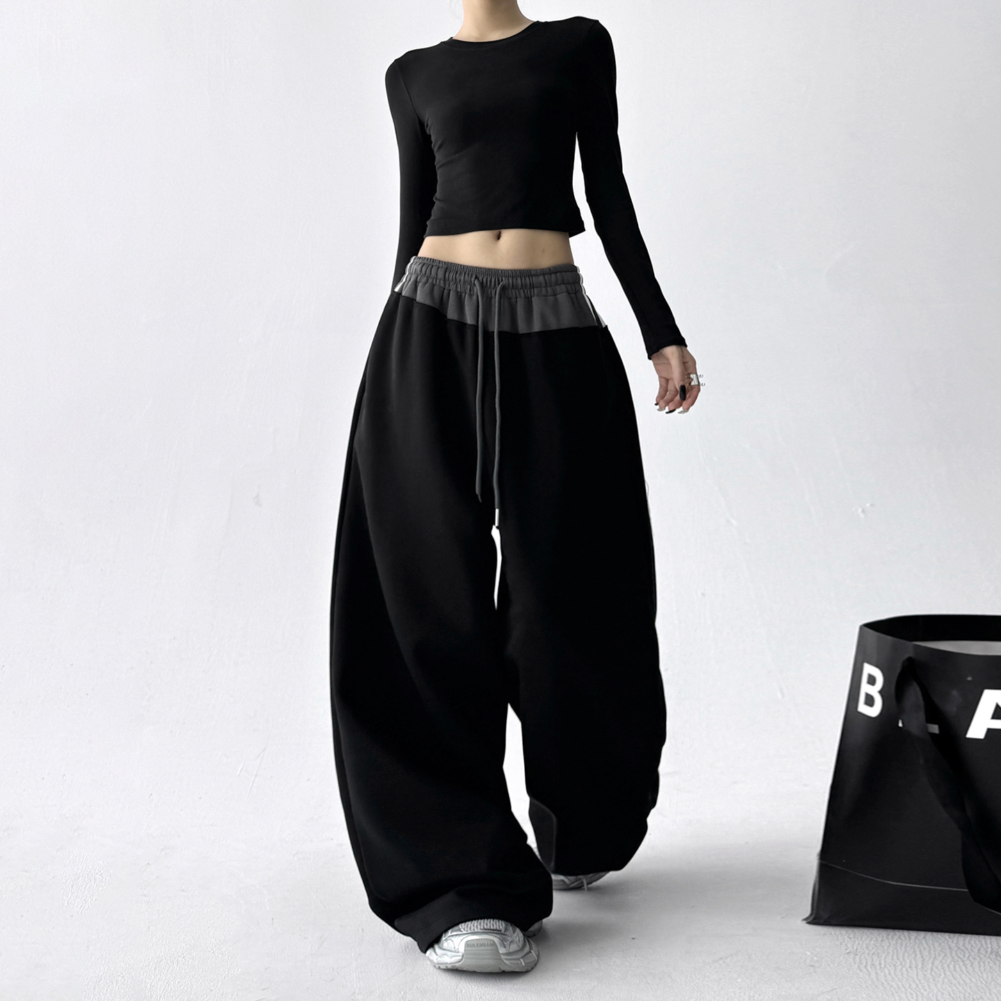 女潮 设计感撞色拼接显瘦宽松垂感高腰运动阔腿卫裤 2025秋季 新款