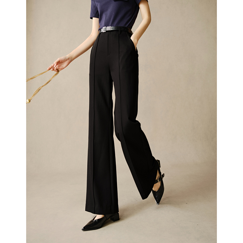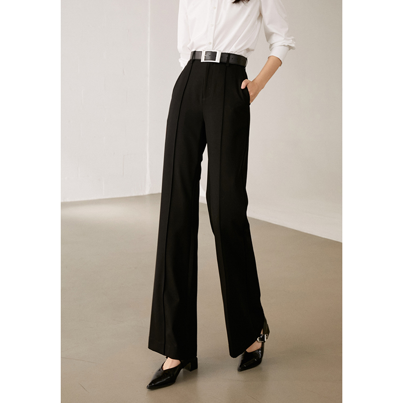 时尚 不含腰带 简约裤 女 子高腰通勤微喇休闲裤 晚白2025年秋新款