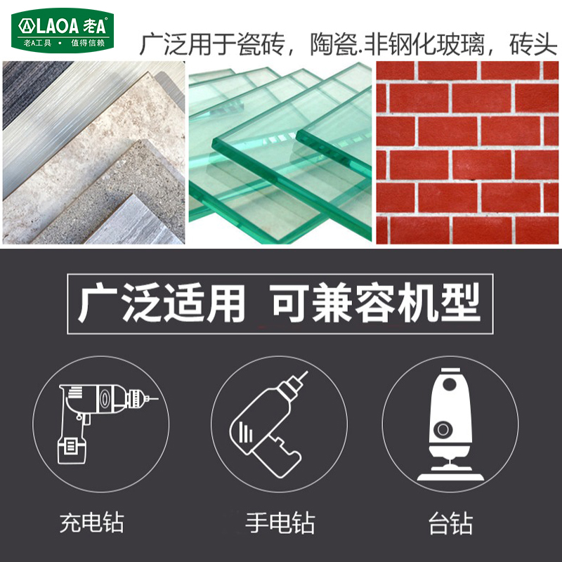 LAOA电动螺丝刀可用六角柄瓷砖钻头玻璃开孔多用6MM 10MM 8MM