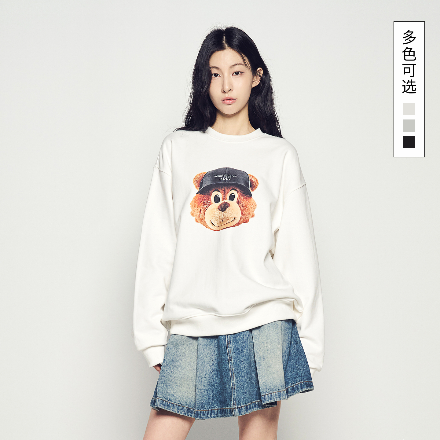 上衣 熊脸图案印花圆领卫衣宽松长袖 ADLV韩国潮牌2025秋季 新品