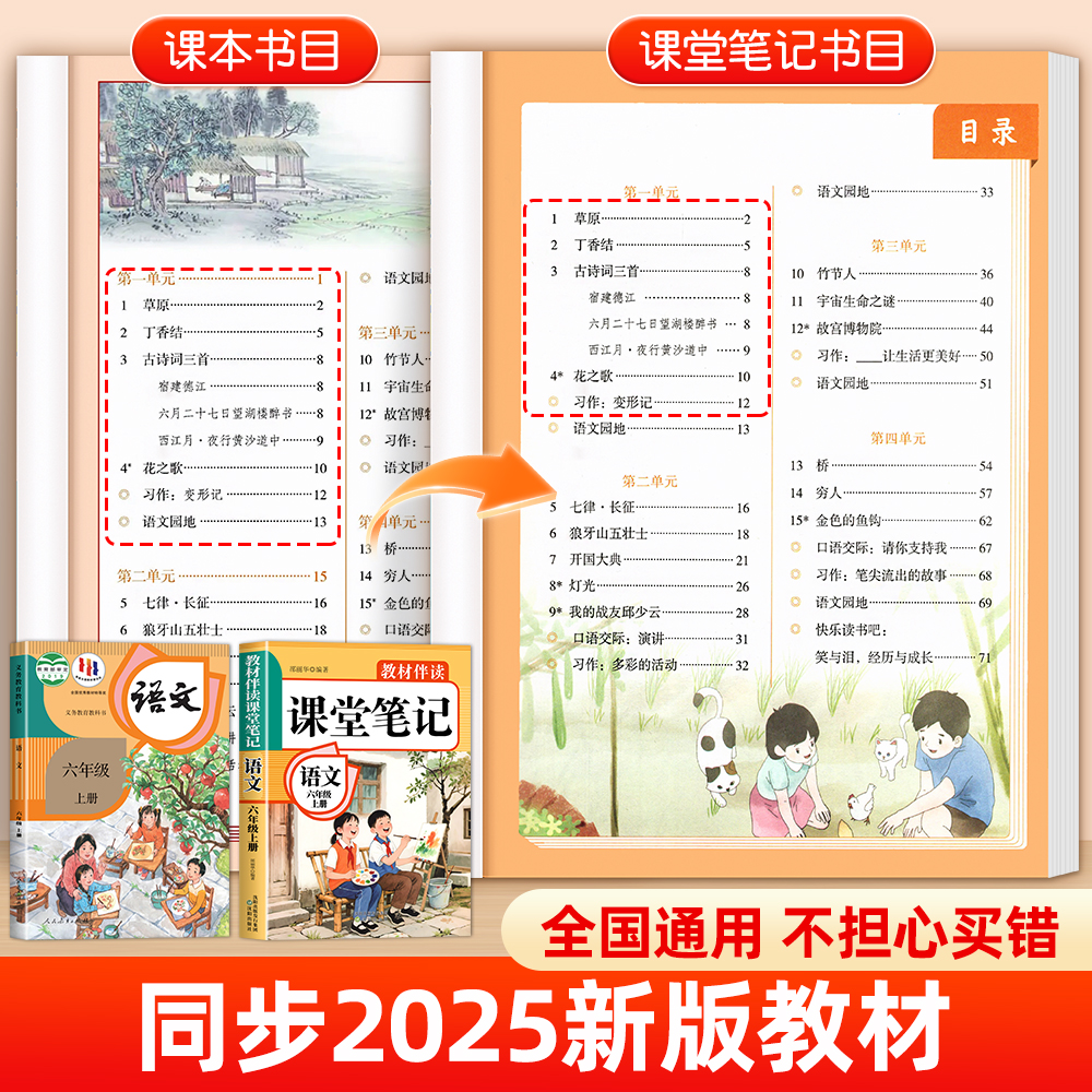 黄冈学霸课堂笔记全套 同步课本预习六上辅导资料书小学教材同步解读正版 2025年新版 六年级上册课堂笔记语文数学英语人教版