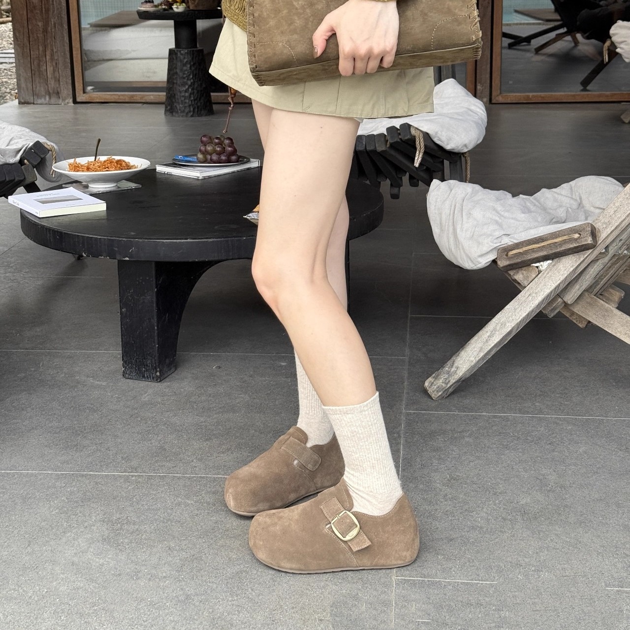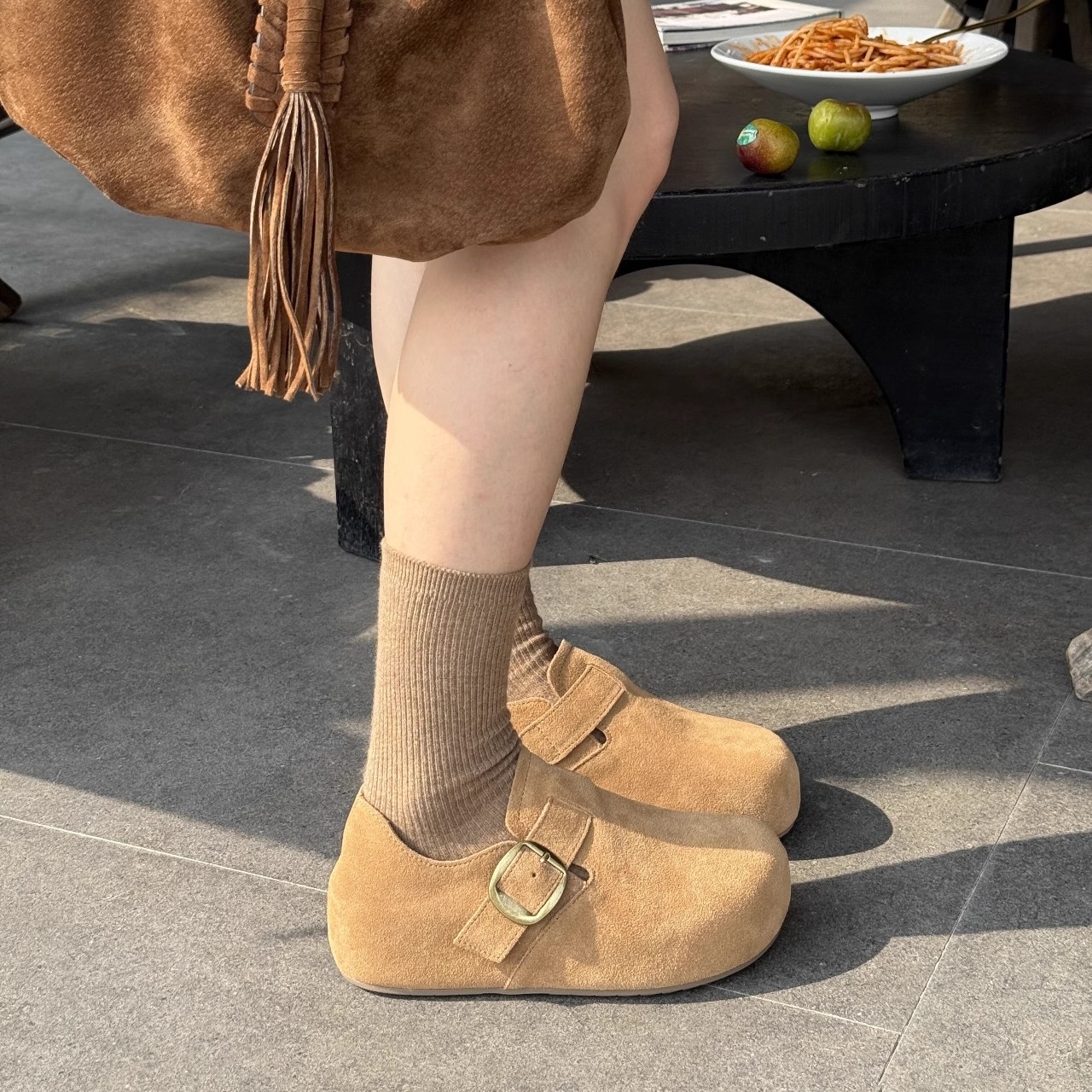 软底复古爆款 艾模儿2025秋季 女豆豆鞋 真皮厚底增高勃肯鞋 舒适 新款