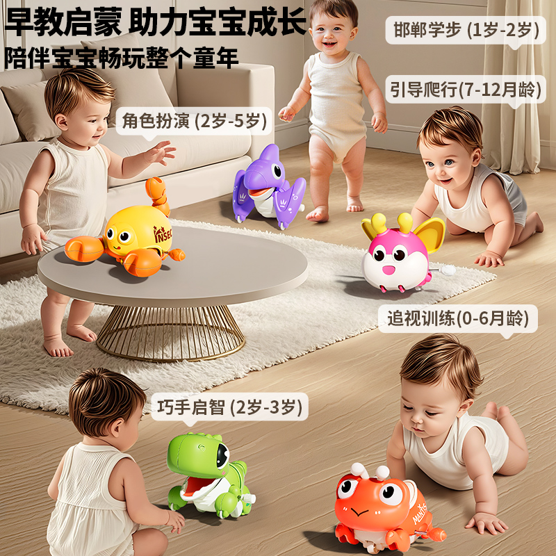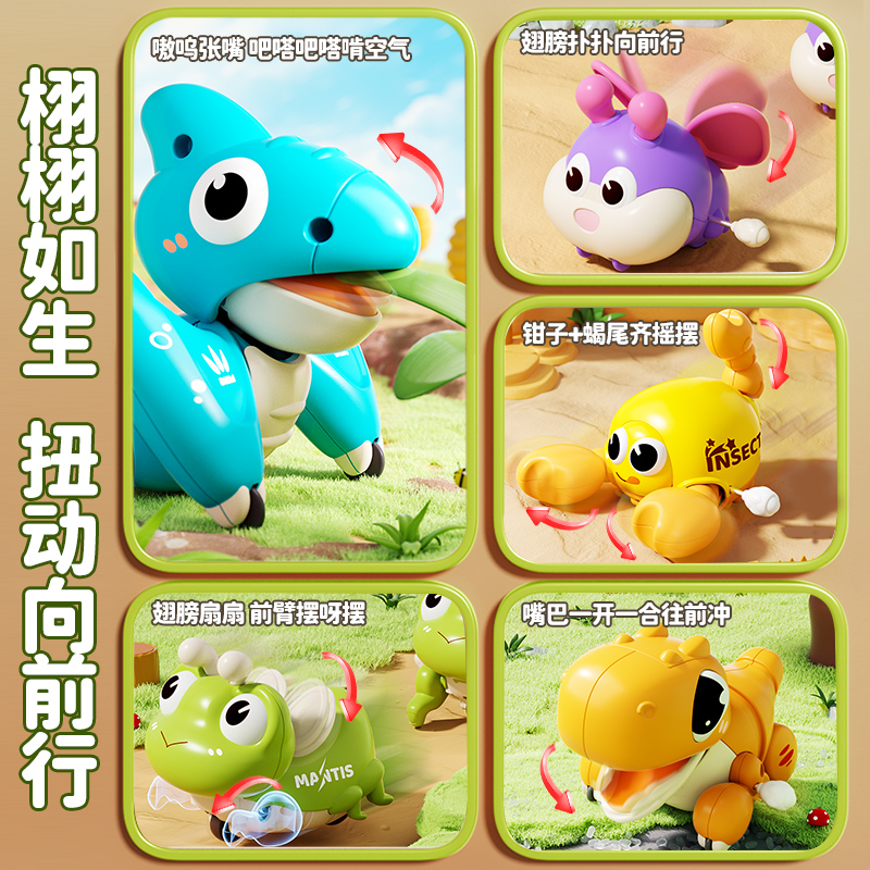 上链发条昆虫玩具婴儿引导爬行玩具趣味上链条小动物宝宝益智早教