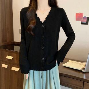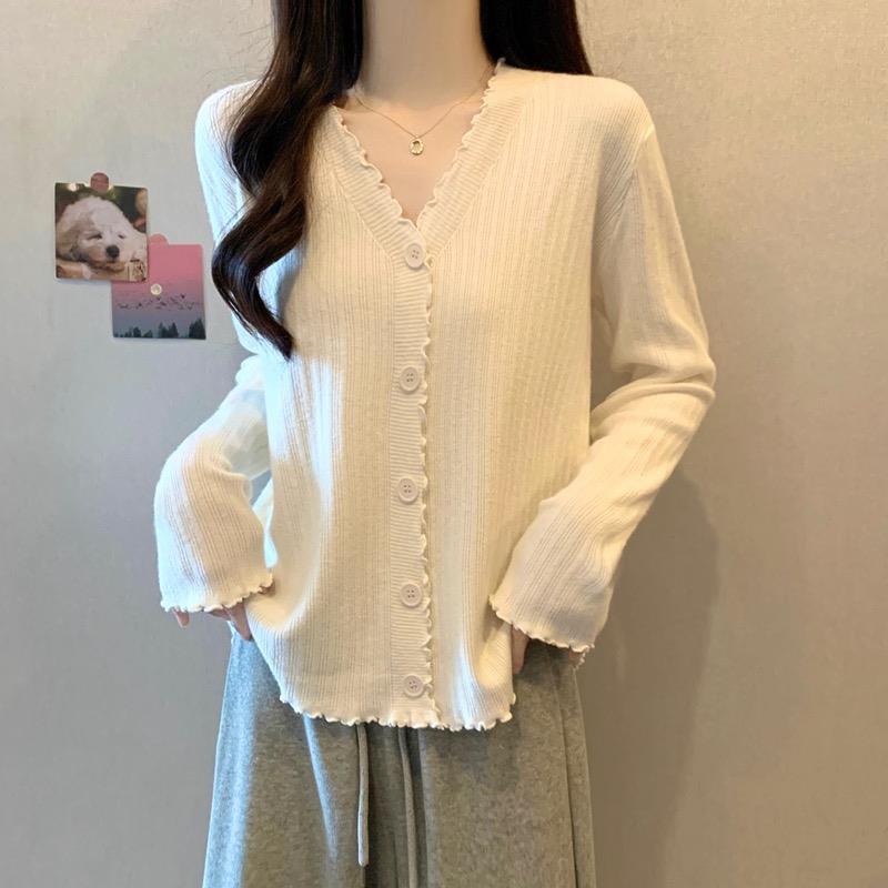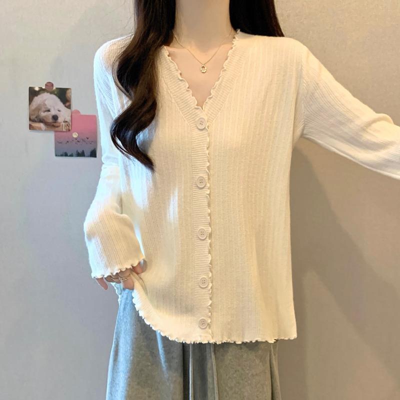 遮肚子木耳边V领针织开衫 女装 胖mm洋气百搭显瘦毛衣1014c 大码 冬季