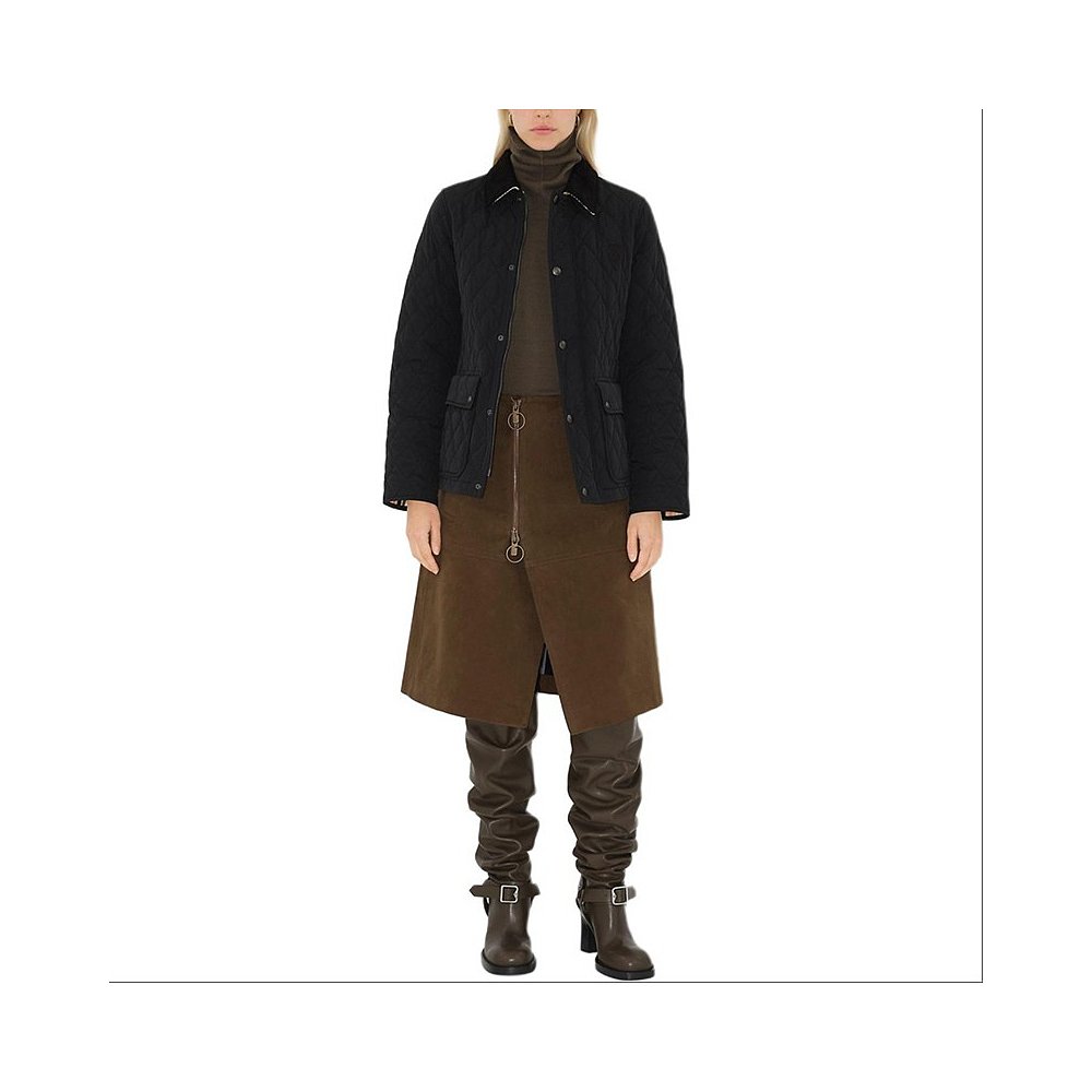 棉 女士黑色锦纶绗缝翻领单排扣长袖 自营欧洲直邮Burberry 博柏利