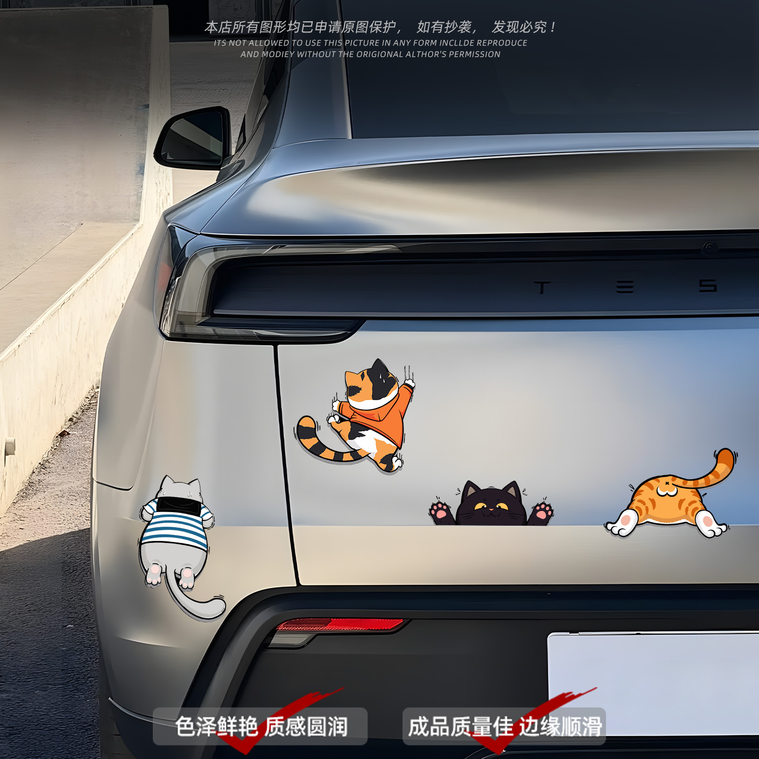 贴 创意DIY改装 可爱卡通原创猫猫汽车装 饰贴纸划痕遮挡防水贴个性
