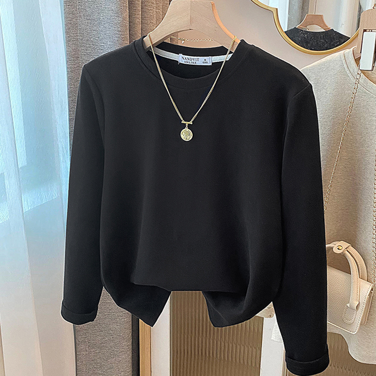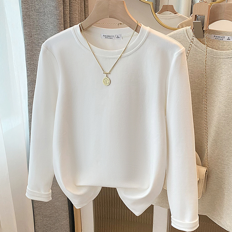 今年打底衫 2025新款 潮 加厚磨毛女内搭秋冬季 300g燕麦色t恤女长袖