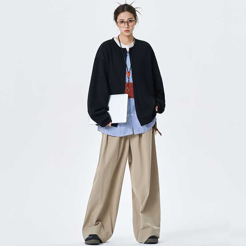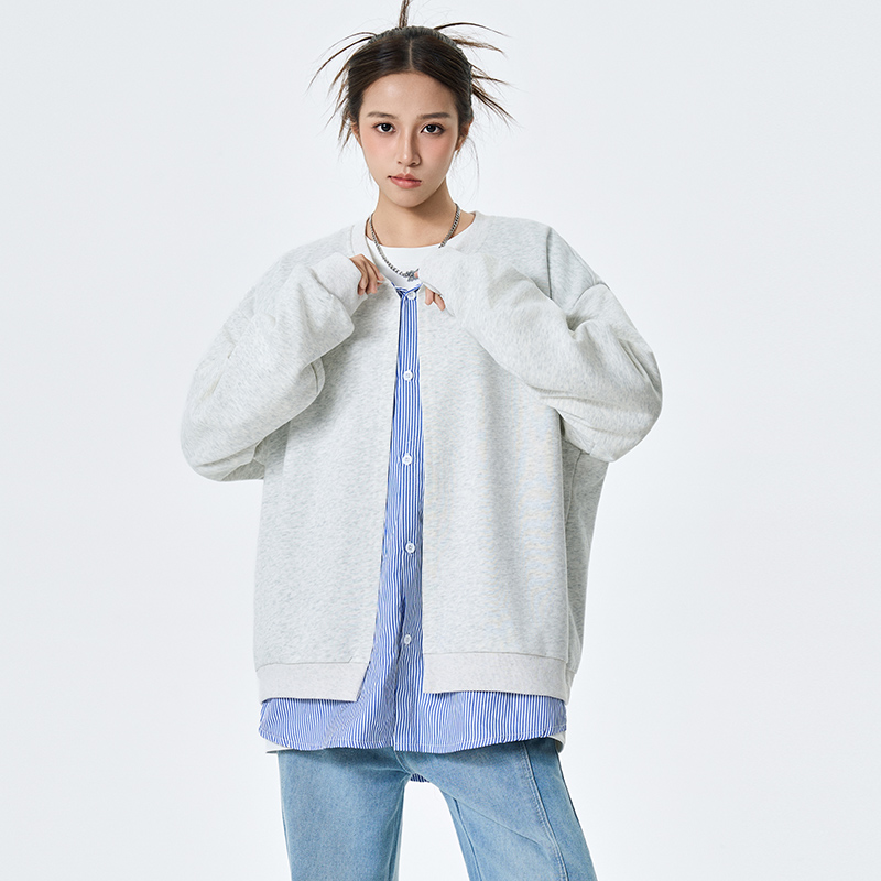 潮牌慵懒宽松情侣外套 卫衣男女秋季 美式 复古条纹假两件开衫