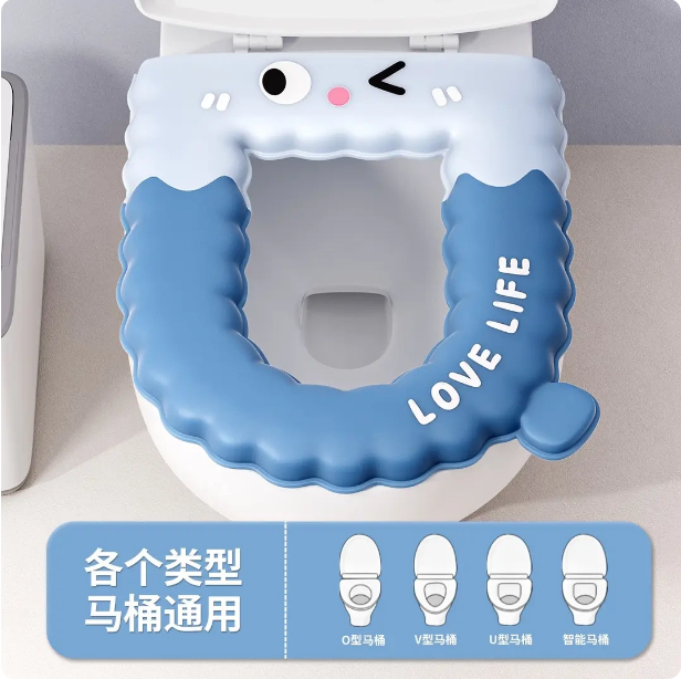 可爱松弛感免洗防水防污可擦高弹通用冬季 坐垫卫生间 马桶垫粘贴式