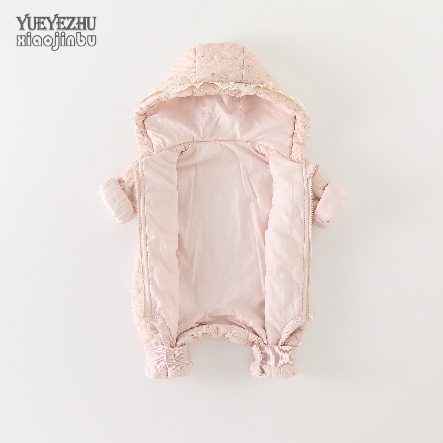 婴儿碎花连体衣秋冬绗棉哈衣女宝宝夹薄棉衣服深秋公主连帽外套潮