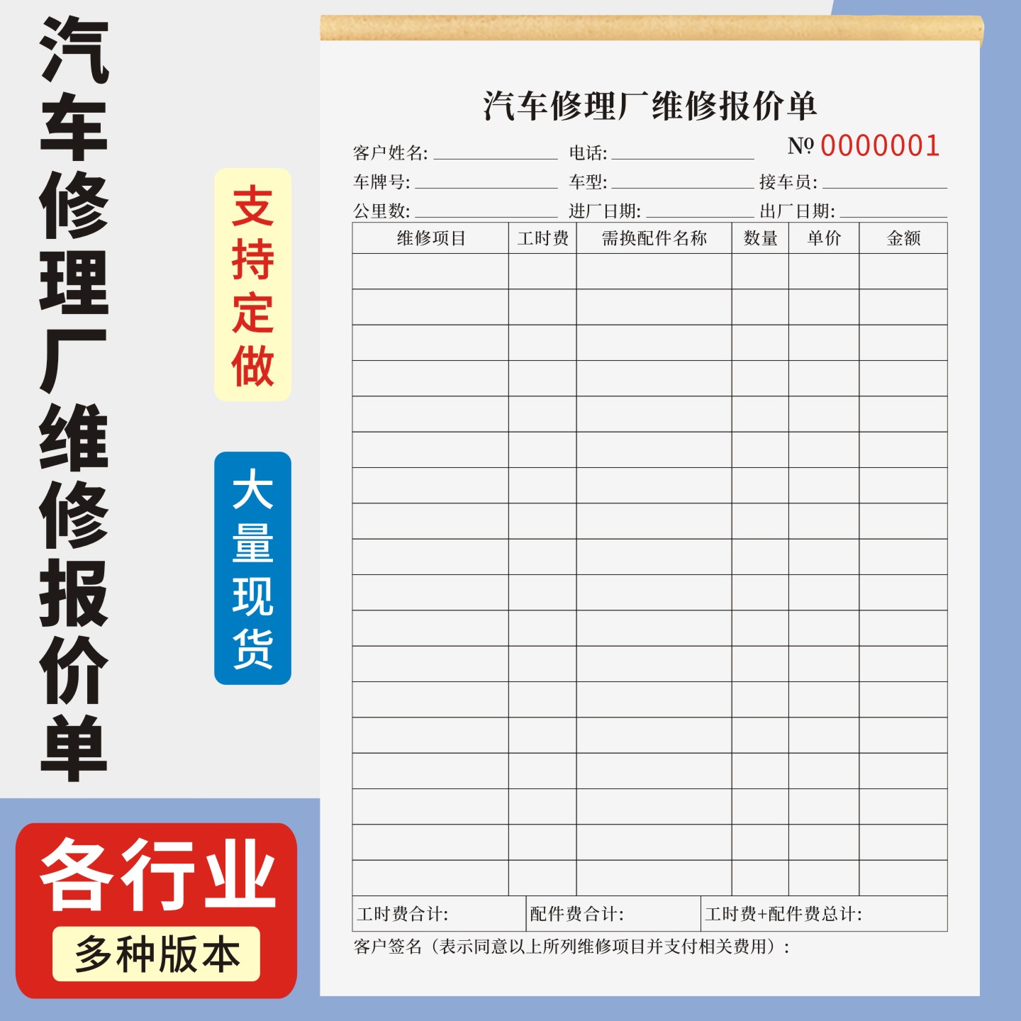 汽车修理厂维修报价单定制订做通用版 汽修厂账单修理店结算清单车辆修车工单保养记录本汽修店报修及结算清单