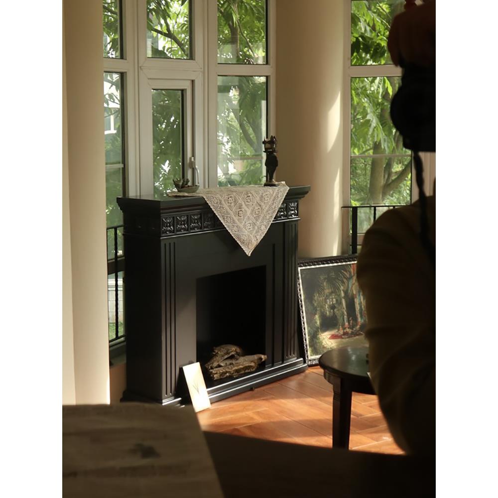饰置物美式 瑞士玑镂刻花玄武黑壁炉装 家用中古边柜 绝版 若奈