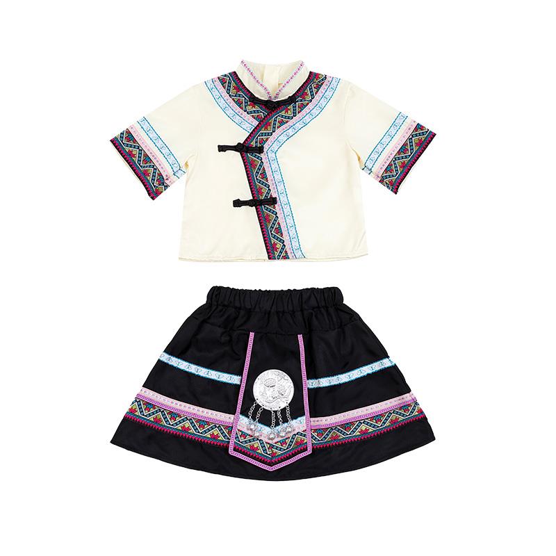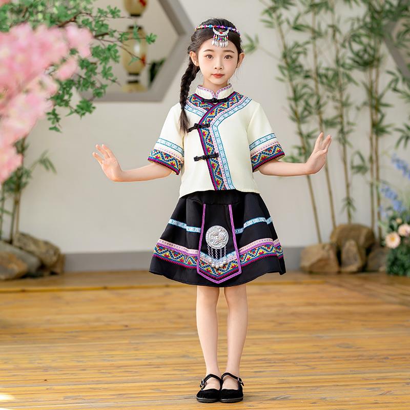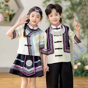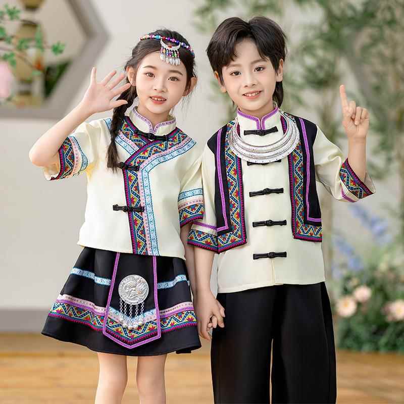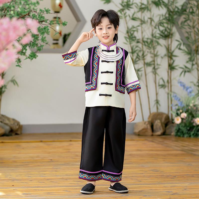 儿童少数民族套装 春夏男女童白族彝族哈尼族苗族舞蹈表演服两件套