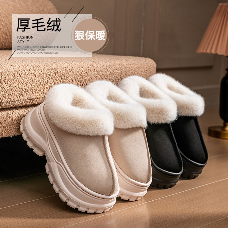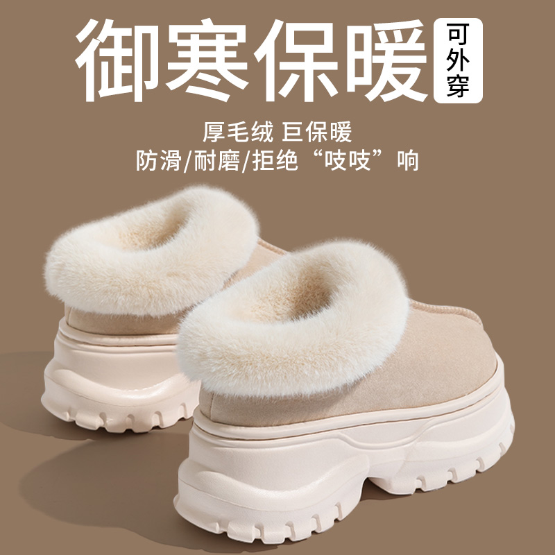 外穿加绒加厚保暖防滑毛毛拖鞋 厚底增高棉鞋 冬季 雪地靴女2025新款