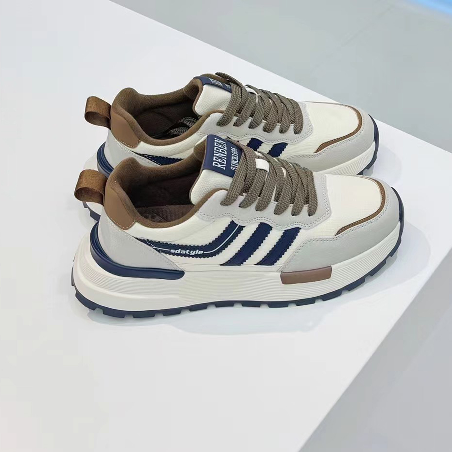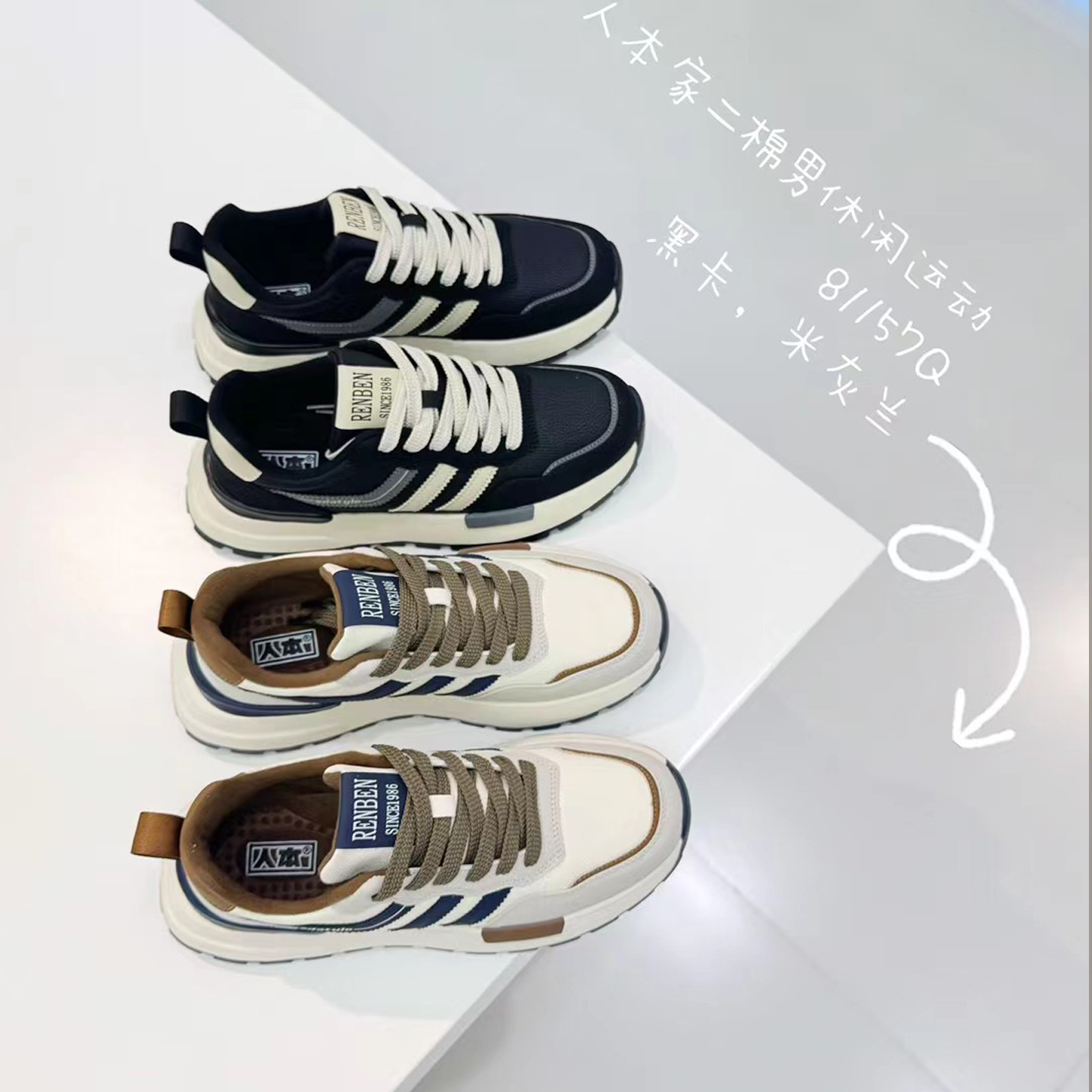 2025秋季 轻便防水皮面条纹防滑鞋 新款 潮流运动休闲鞋 时尚 人本男鞋